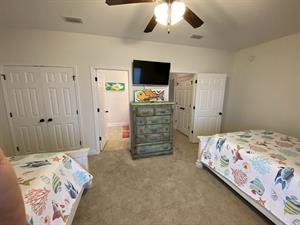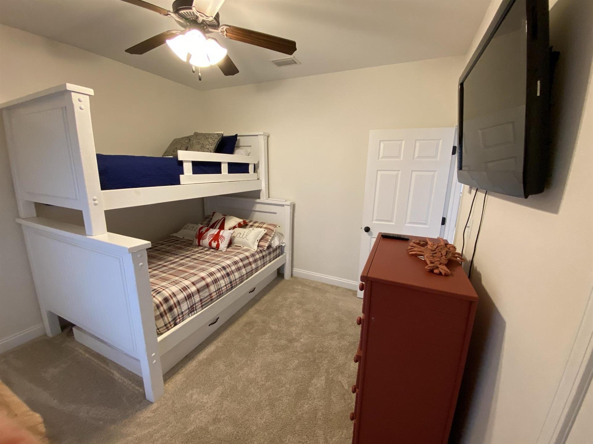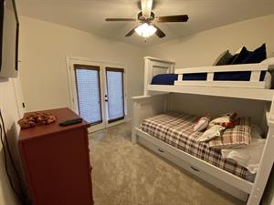 bedroom features a bunk bed with a twin on top, full size on the bottom, and a