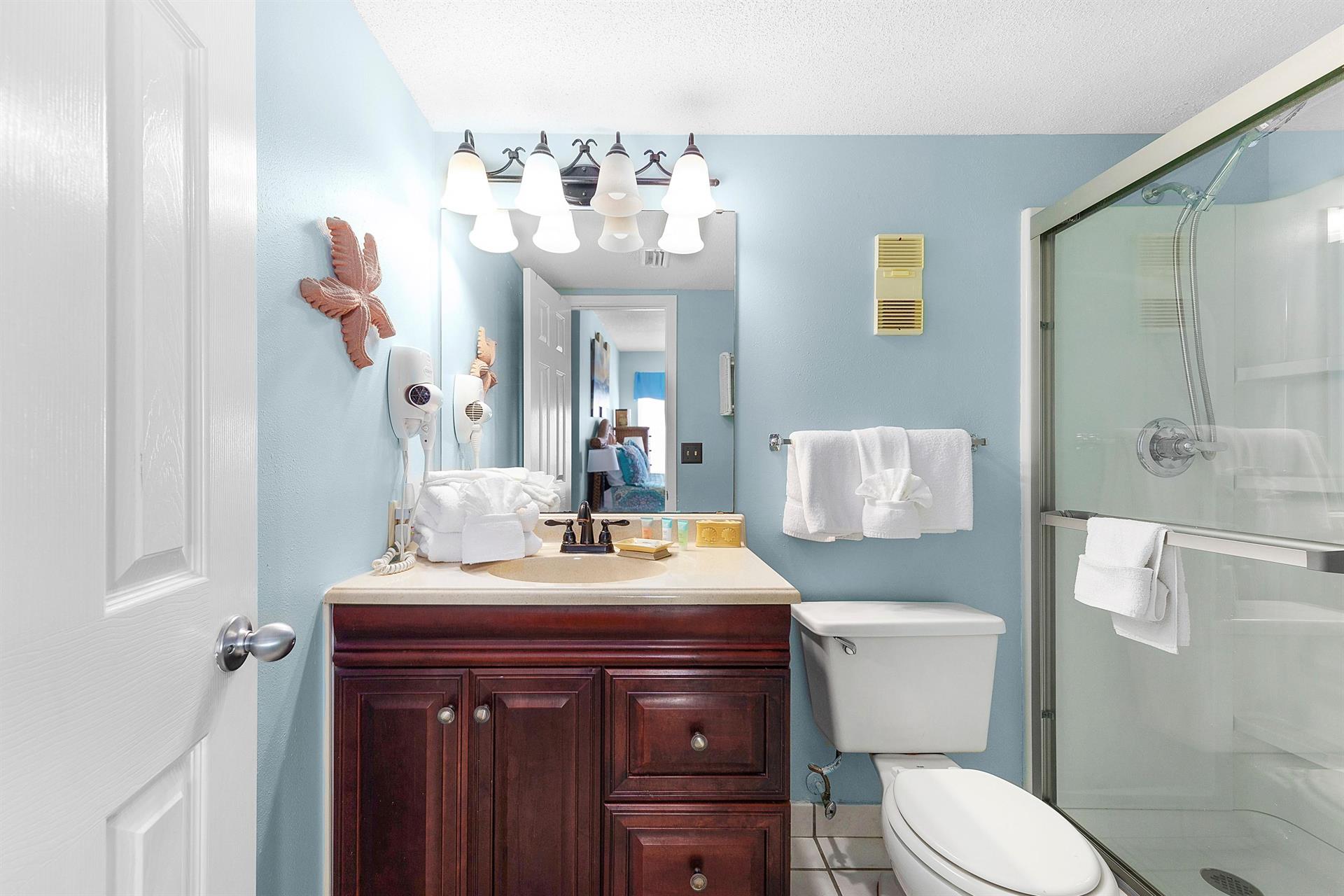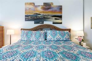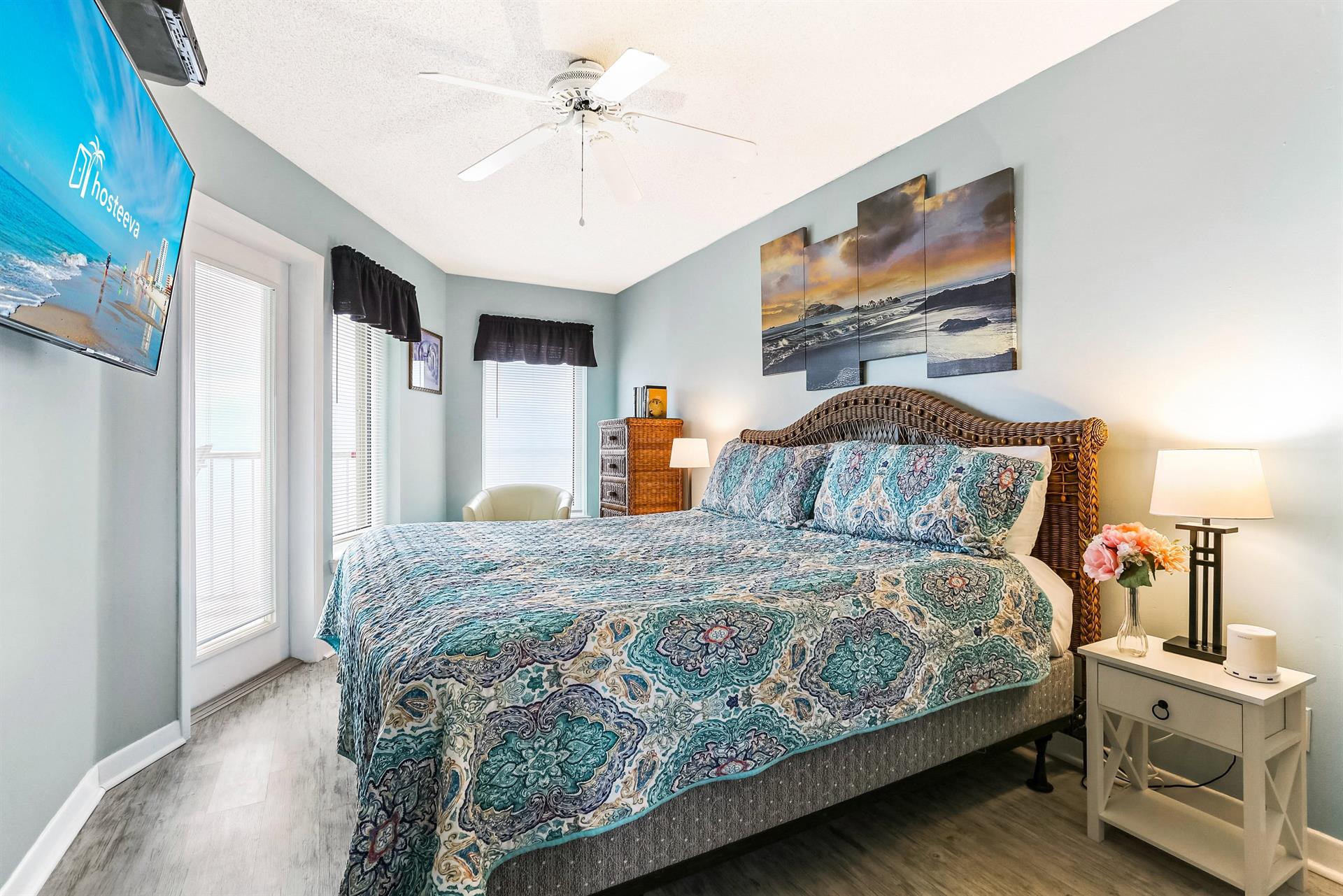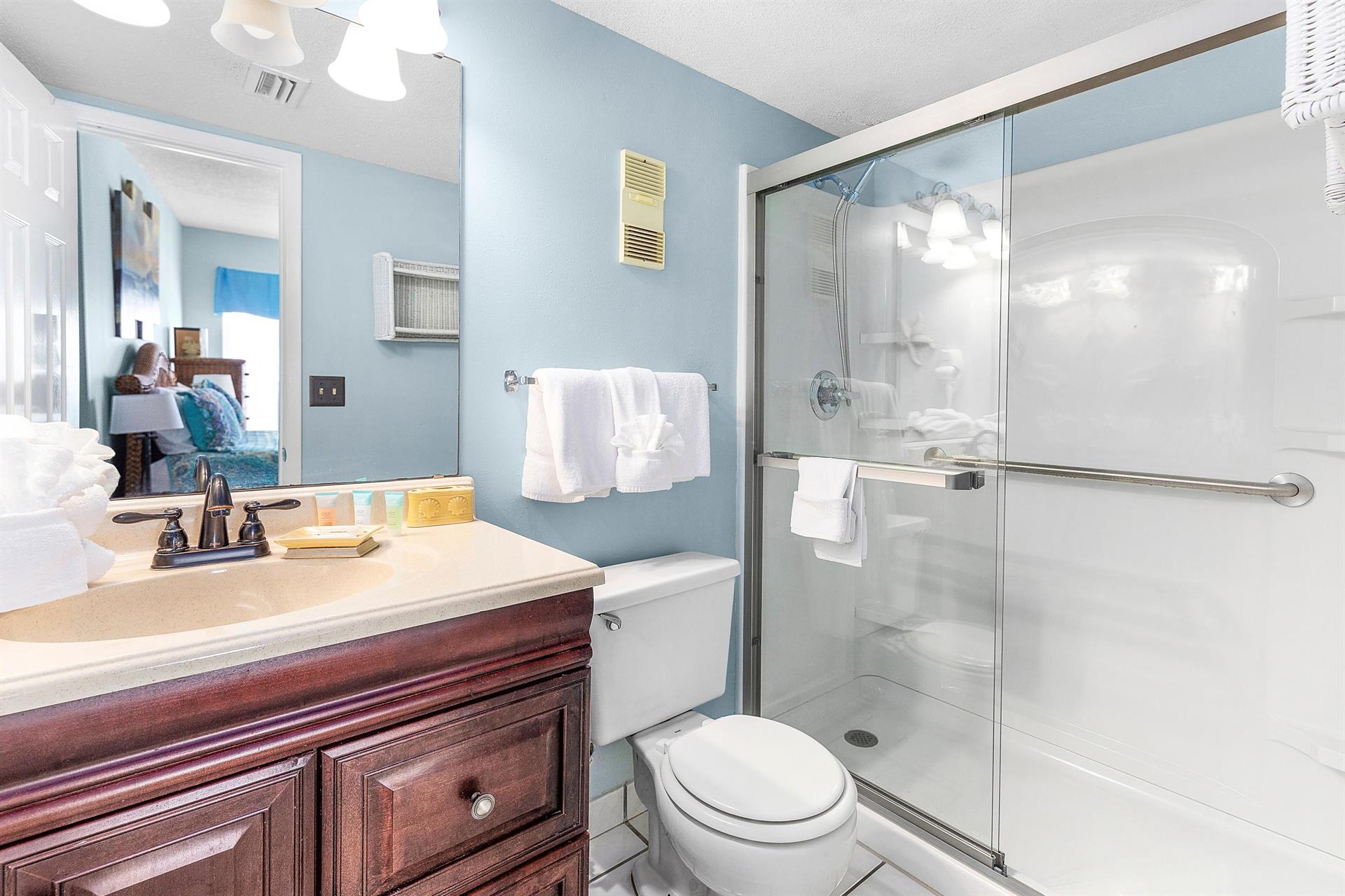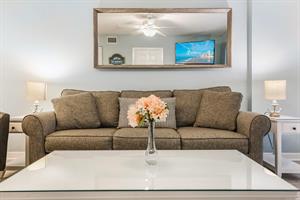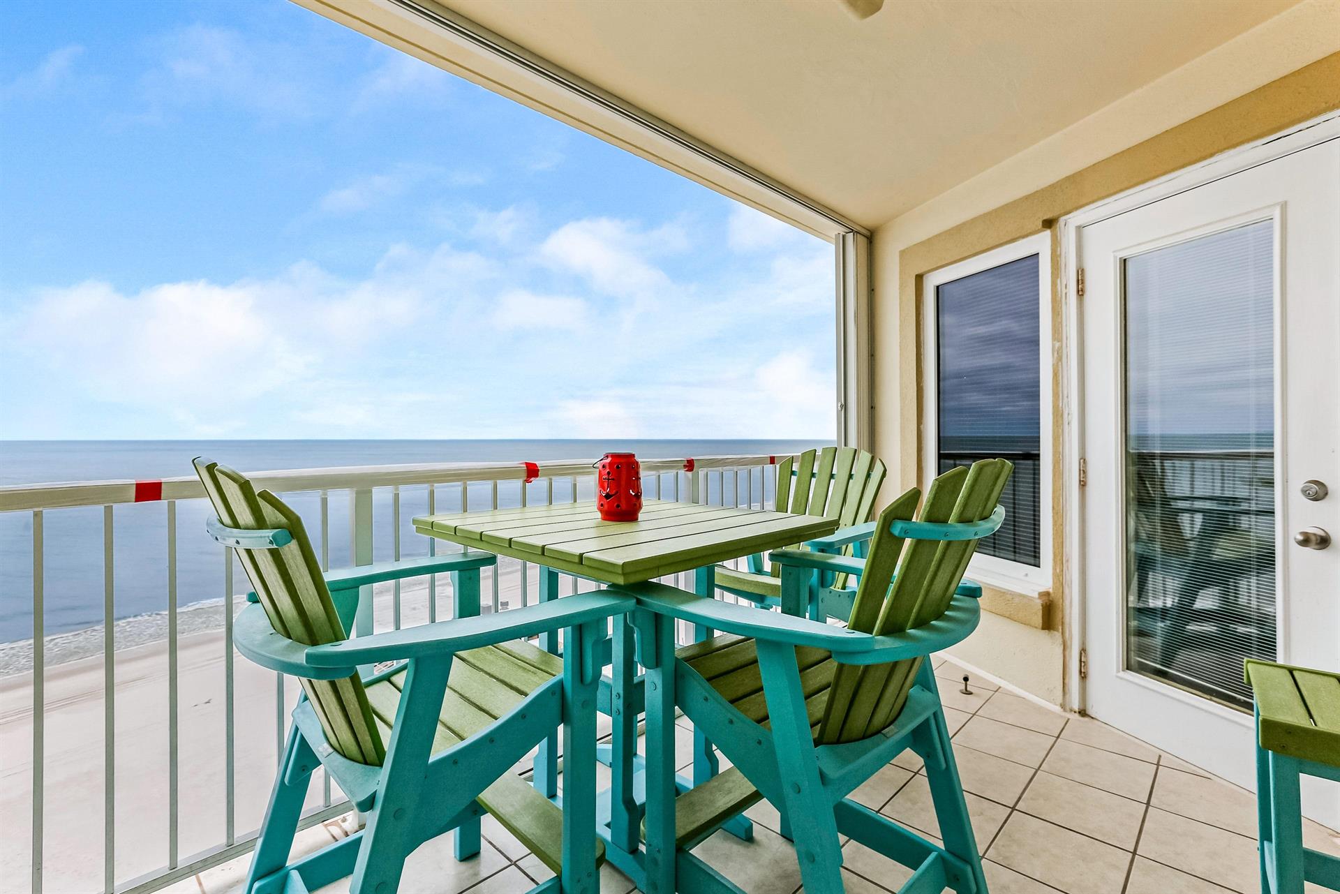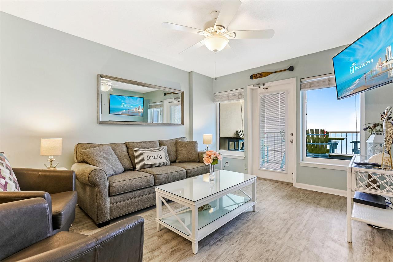 This incredibly charming and cozy 2 bedroom, 2 bathroom condo comes with a private balcony with unobstructed views of the Gulf of Mexico! The balcony has access not only from the living room but also your own master bedroom, making it easy for you to enjoy your morning cup of coffee overlooking the beautiful sunrise or enjoying a drink or two while taking in the views of the sunset against the blue of the gulf water. The master bedroom has a king size bed, guestroom has a queen size bed, and living room features a sleeper sofa and a murphy bed.