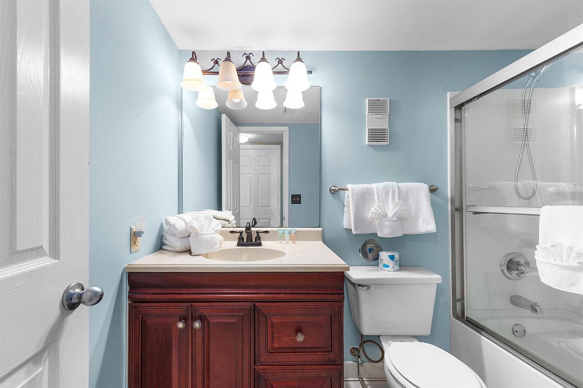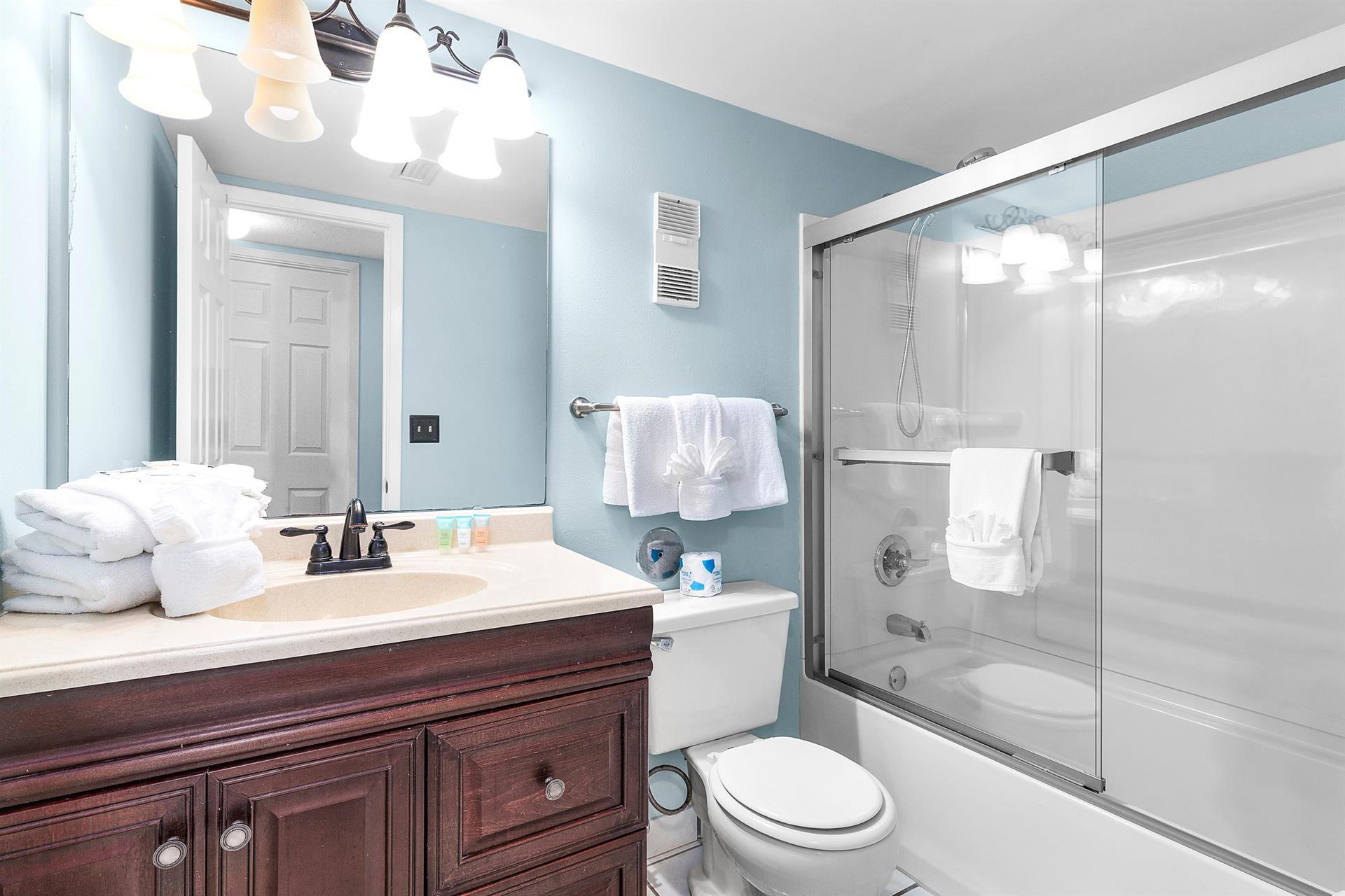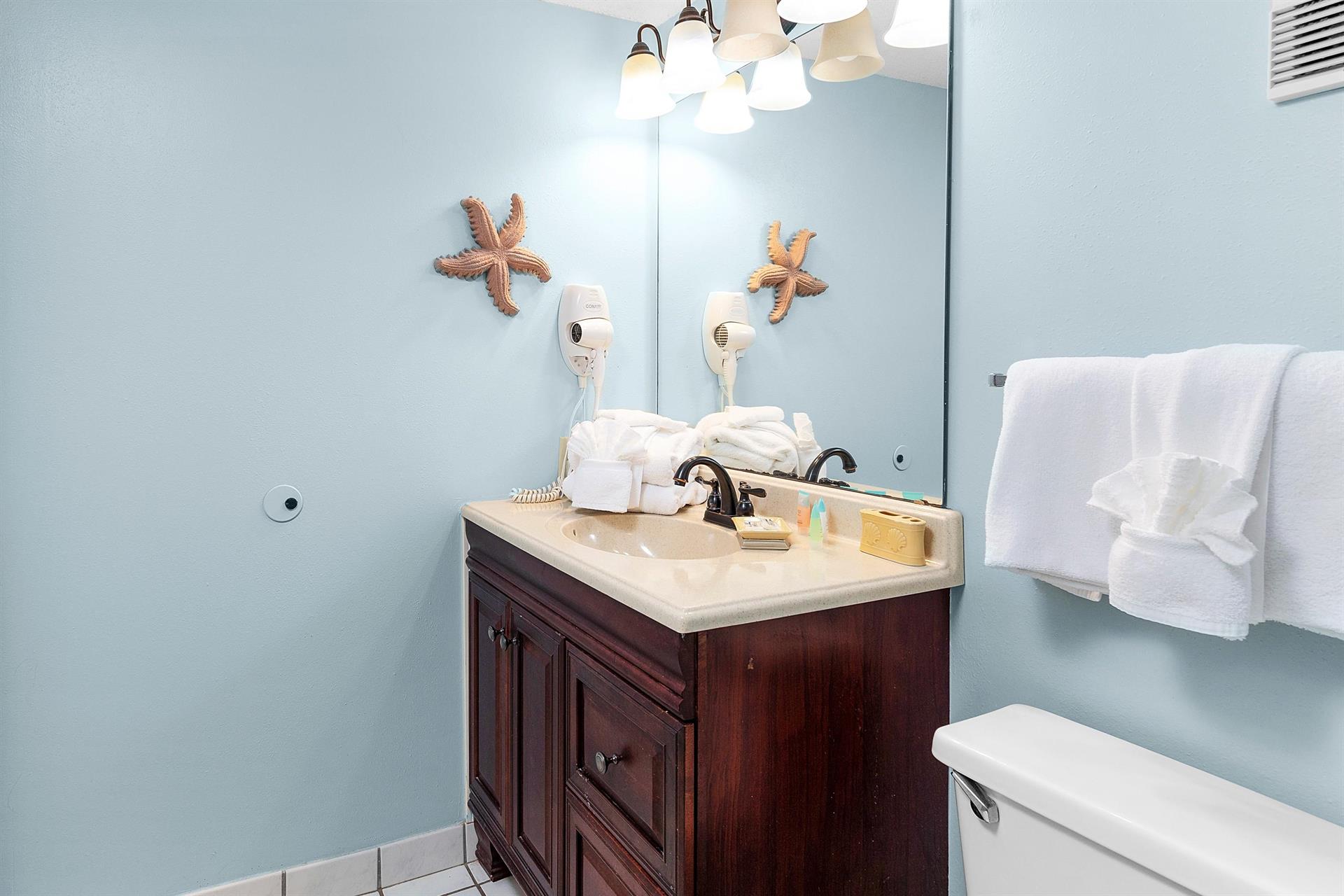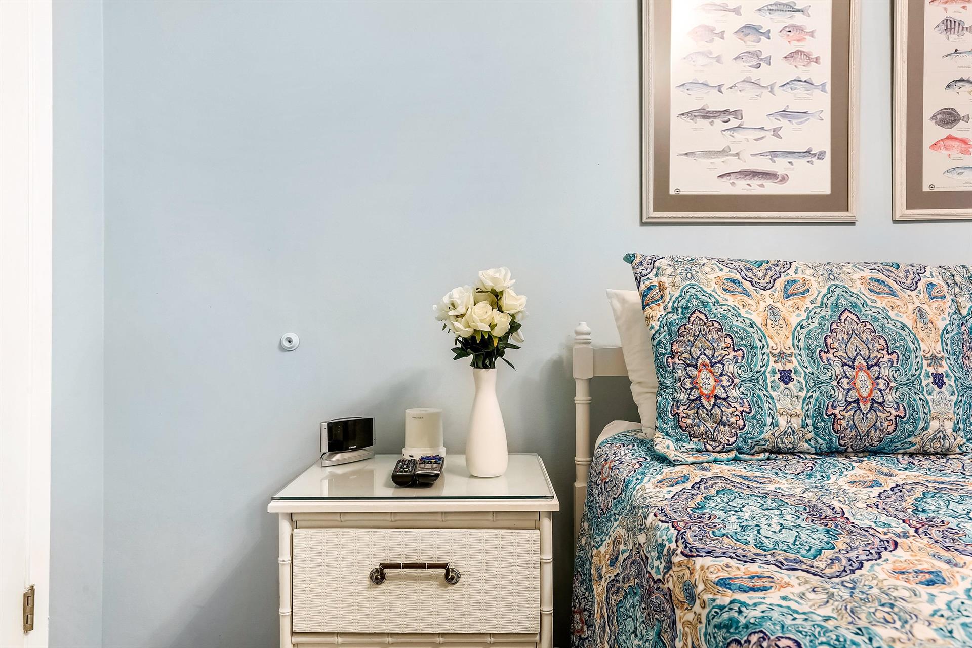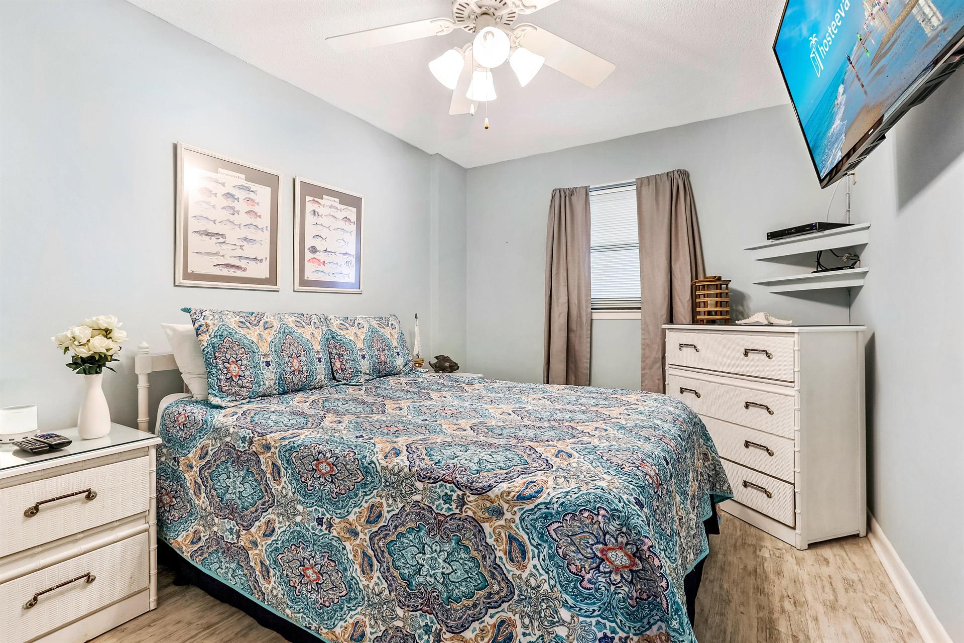 This incredibly charming and cozy 2 bedroom, 2 bathroom condo comes with a private balcony with unobstructed views of the Gulf of Mexico! The balcony has access not only from the living room but also your own master bedroom, making it easy for you to enjoy your morning cup of coffee overlooking the beautiful sunrise or enjoying a drink or two while taking in the views of the sunset against the blue of the gulf water. The master bedroom has a king size bed, guestroom has a queen size bed, and living room features a sleeper sofa and a murphy bed.