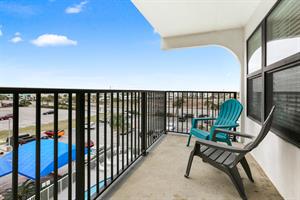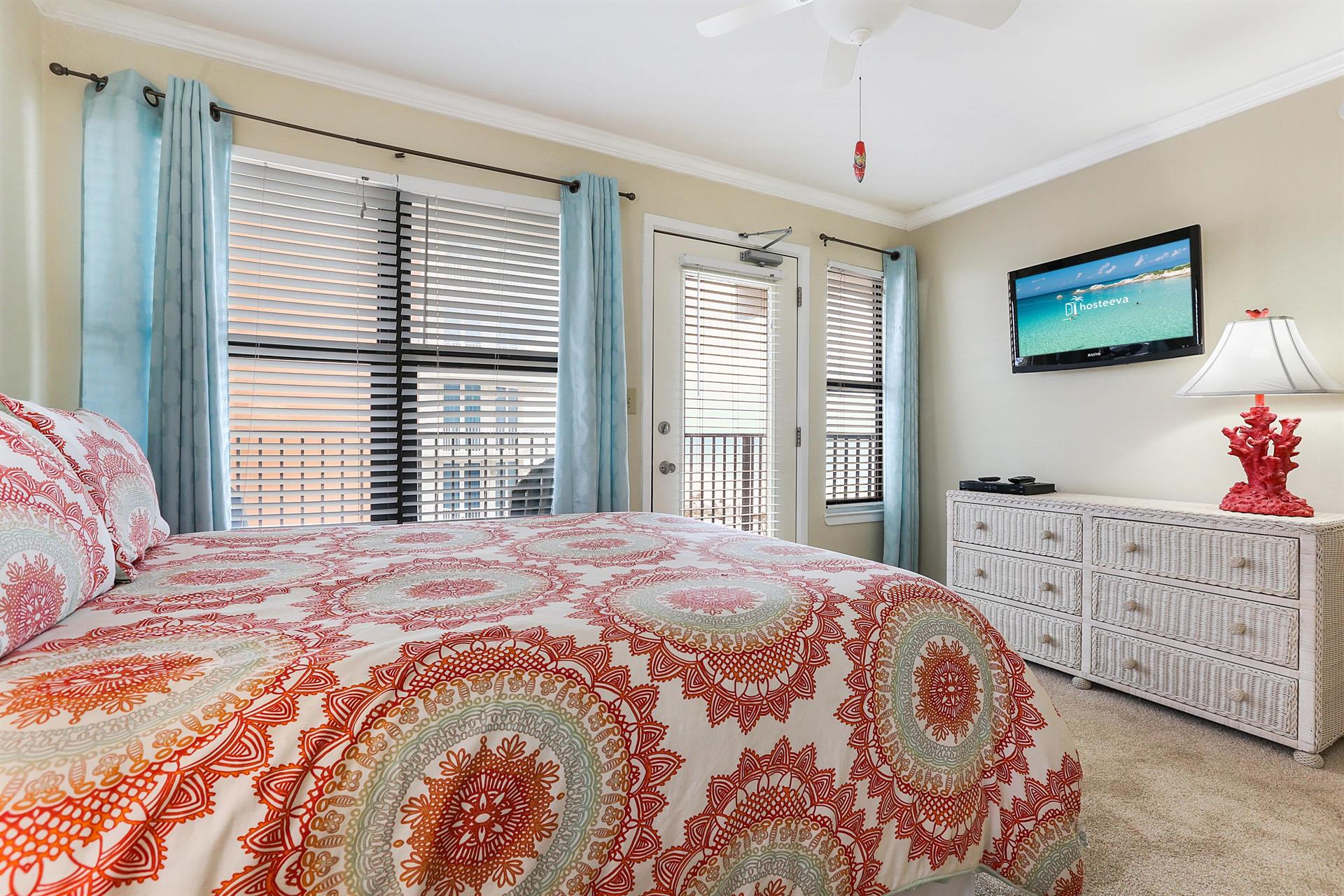 The master bedroom has a queen bed and has access to the balcony. There is also a sleeper sofa in the living room. You have beautiful beach views from the balcony on one side of the condo and a view of the pool area. There is also a great bbq area to grill out a delicious dinner!