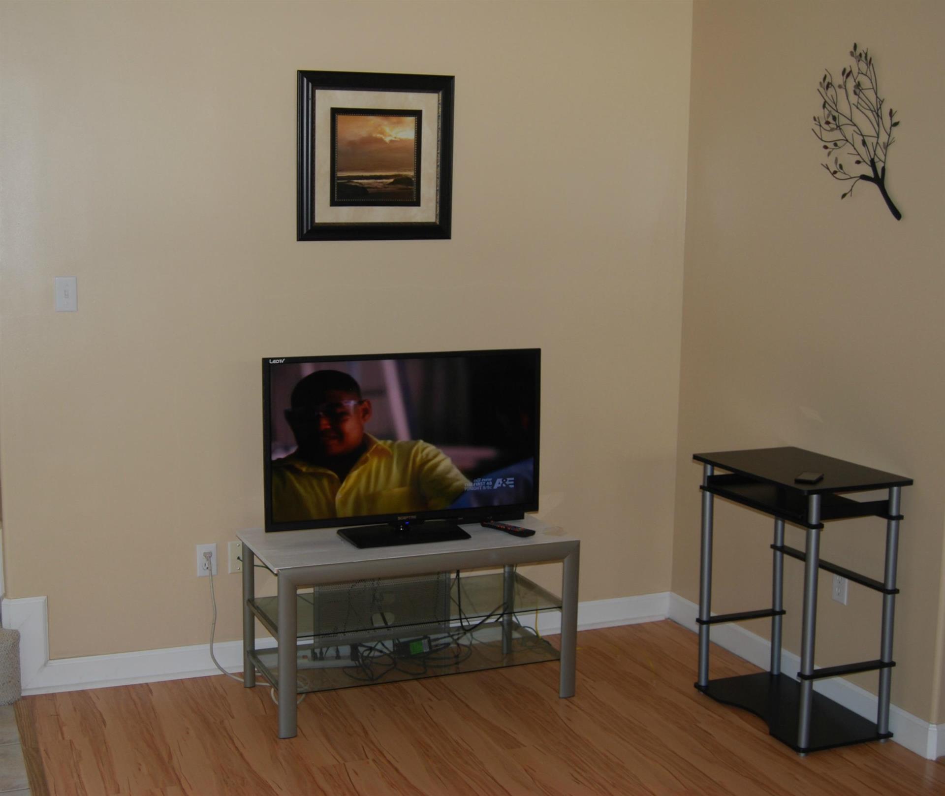 sized bed and TV. The master bath has a double vanity sink and a walk in
