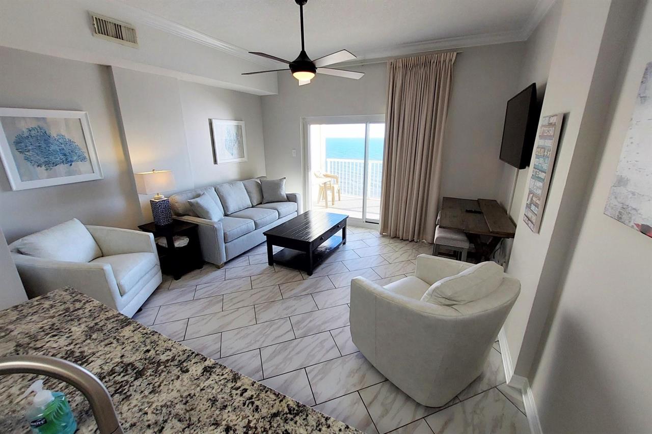 Enjoy panoramic views of the sparkling gulf water and sugar white sand from