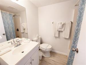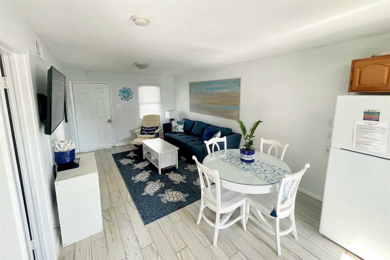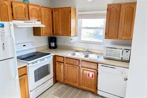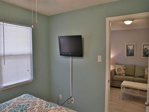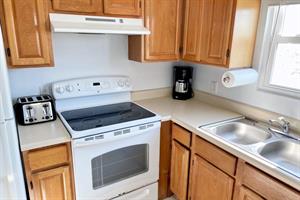 This two bedroom, one bath unit sleeps six with sleeper sofa in living room.
