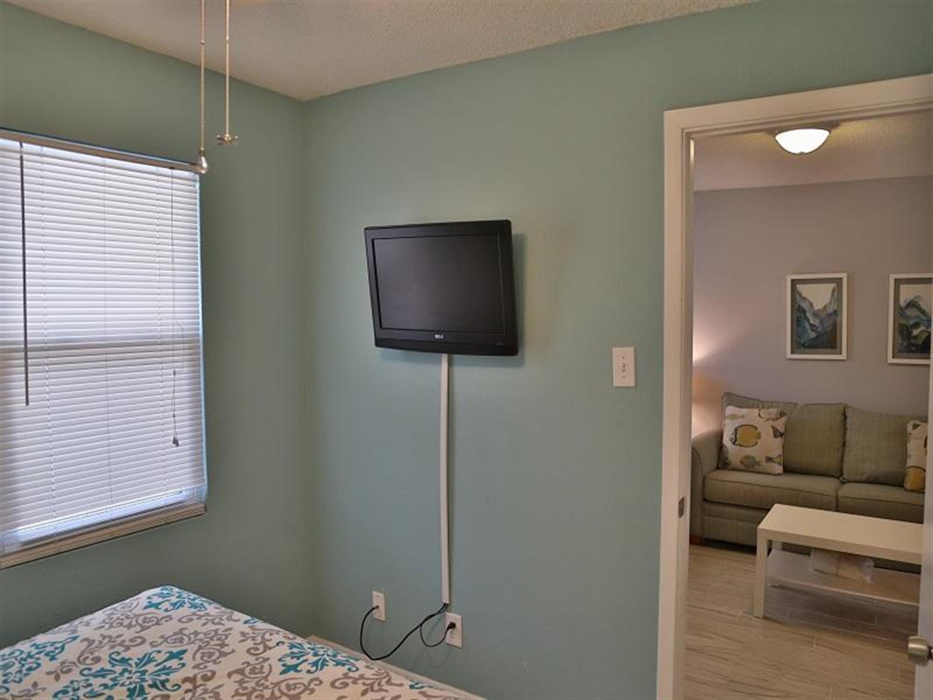 Flat screen TVs wall mounted in each bedroom, with front bedroom with 40"