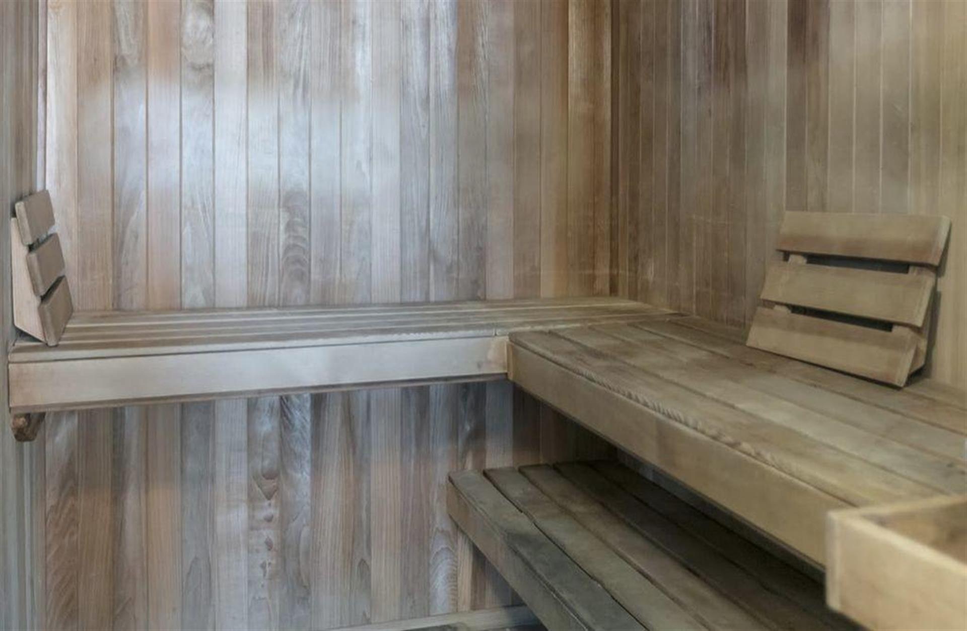 indoor pool, fitness room with TV, a Sauna, and a BBQ area with grills.