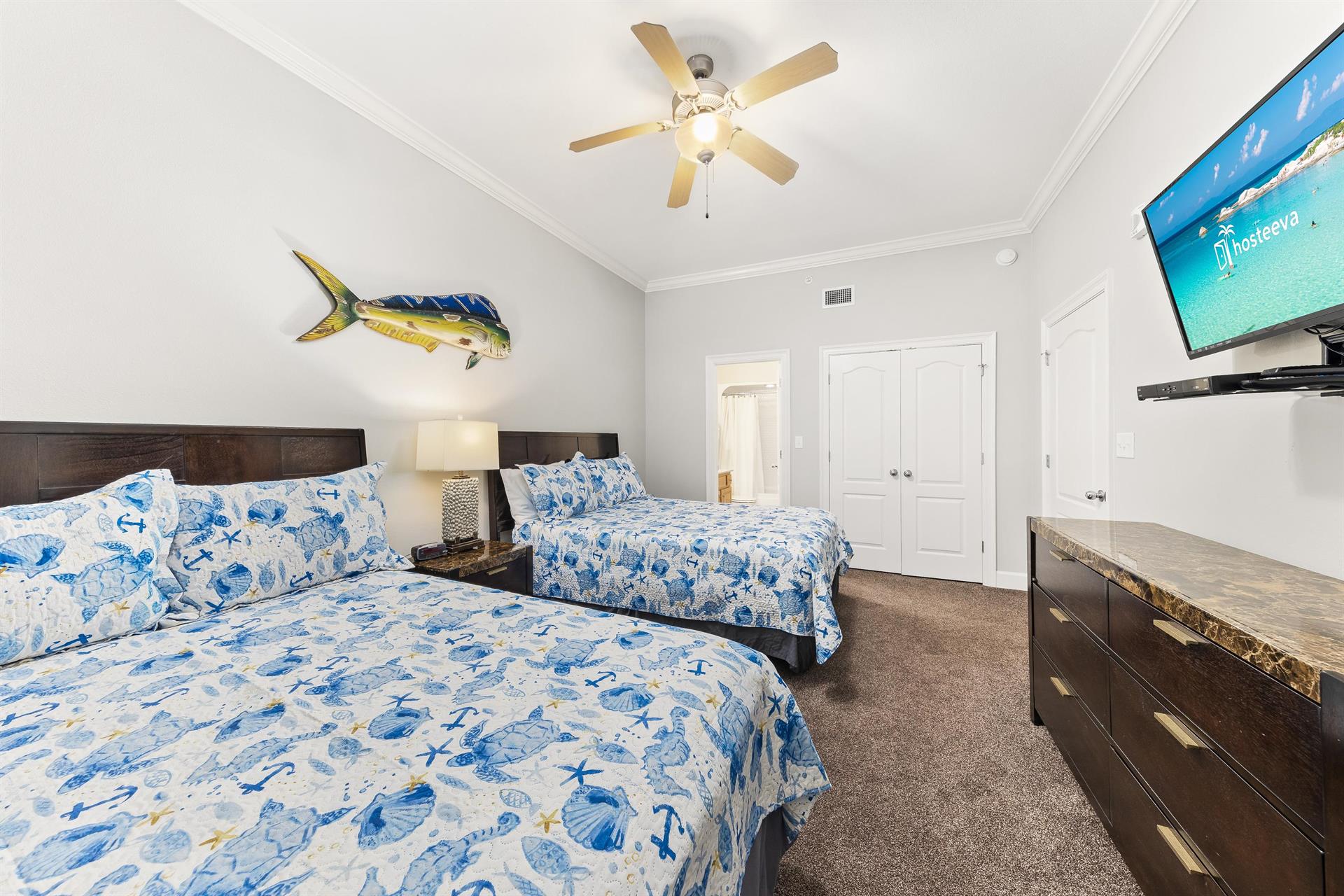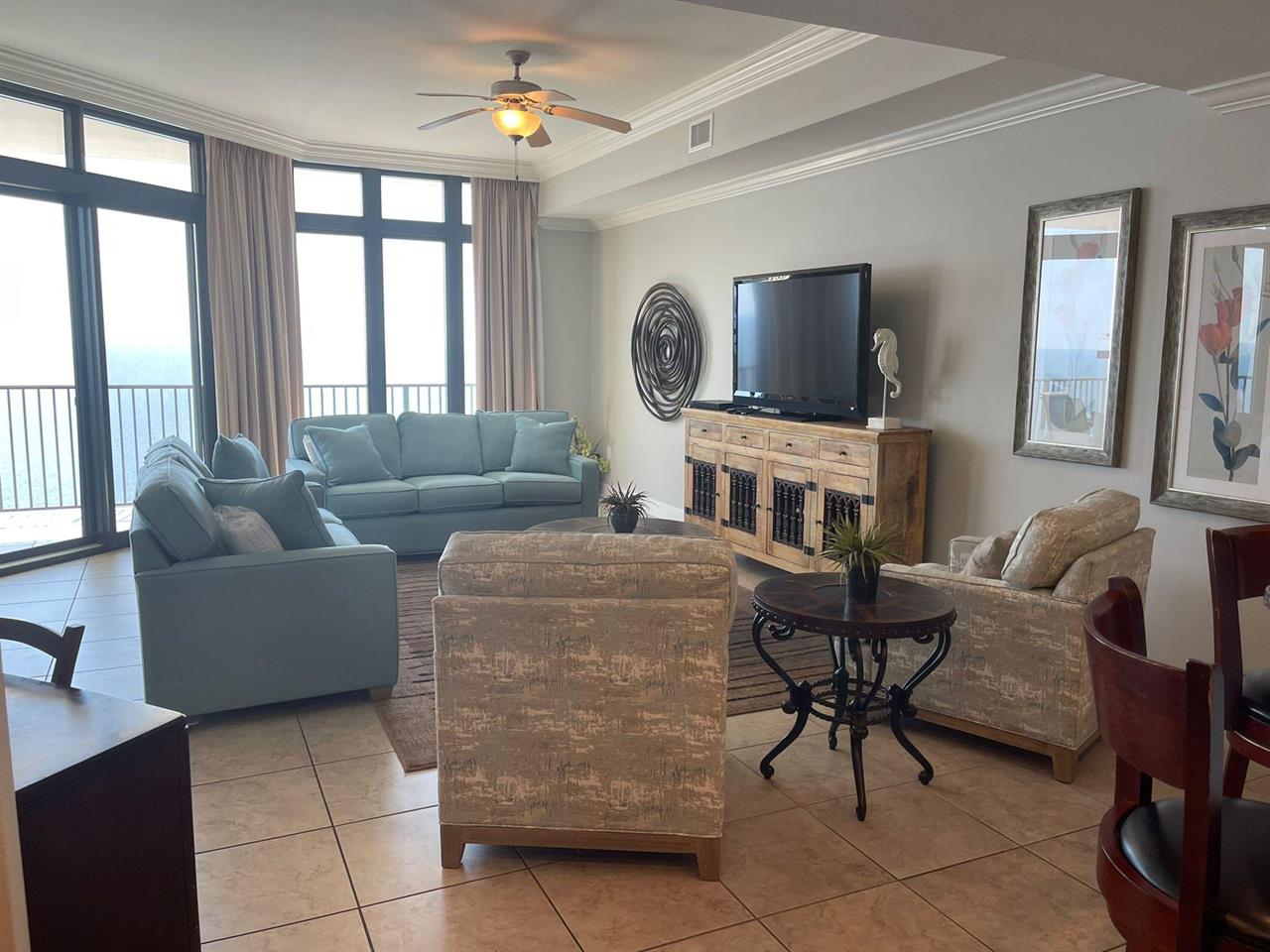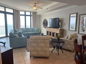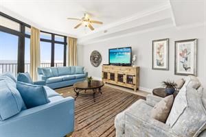 About Phoenix West II 2203 is located in Orange Beach, Alabama and sits directly on the Gulf of Mexico. Relax by enjoying its views from your private balcony or have fun exploring this alluring, family-friendly resort. All your swimming needs will be met all year long with heated indoor and outdoor pools, a kiddie pool, a splash pad and a lazy river with a slide! Did we forget to mention the multi-level fitness center, lighted tennis court, hot tubs and saunas? Guests of all ages can enjoy amenities galore at Phoenix West II. This gulf front unit is located on the 22nd floor with a large, open floor plan and floor-to-ceiling windows. This 3 bedroom/4 bath condo gives ample space for up to 10 guests and each bedroom has its own private bathroom. There is a king size bed in the master and 2nd bedroom, two queen beds in the 3rd bedroom and a queen sleeper sofa located in the living room.