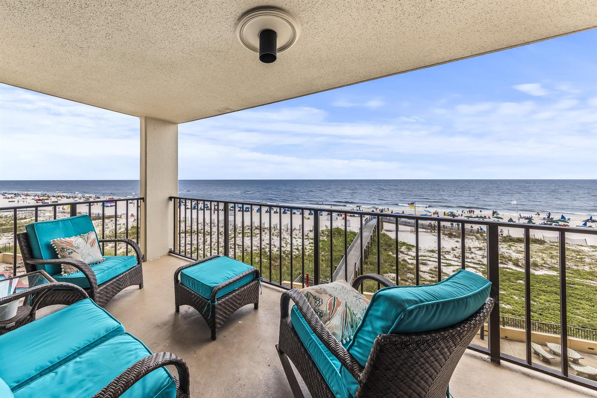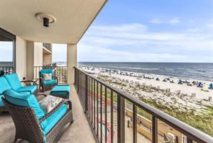 • Balcony with charming patio furniture overlooks gorgeous Gulf front view