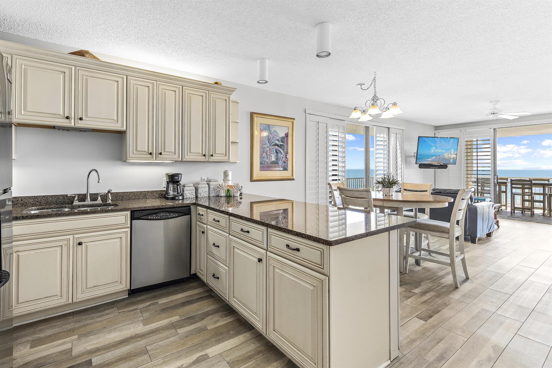 This fully furnished beachfront vacation rental condo by Hosteeva is a coastal oasis for family gatherings, special celebrations and vacations.