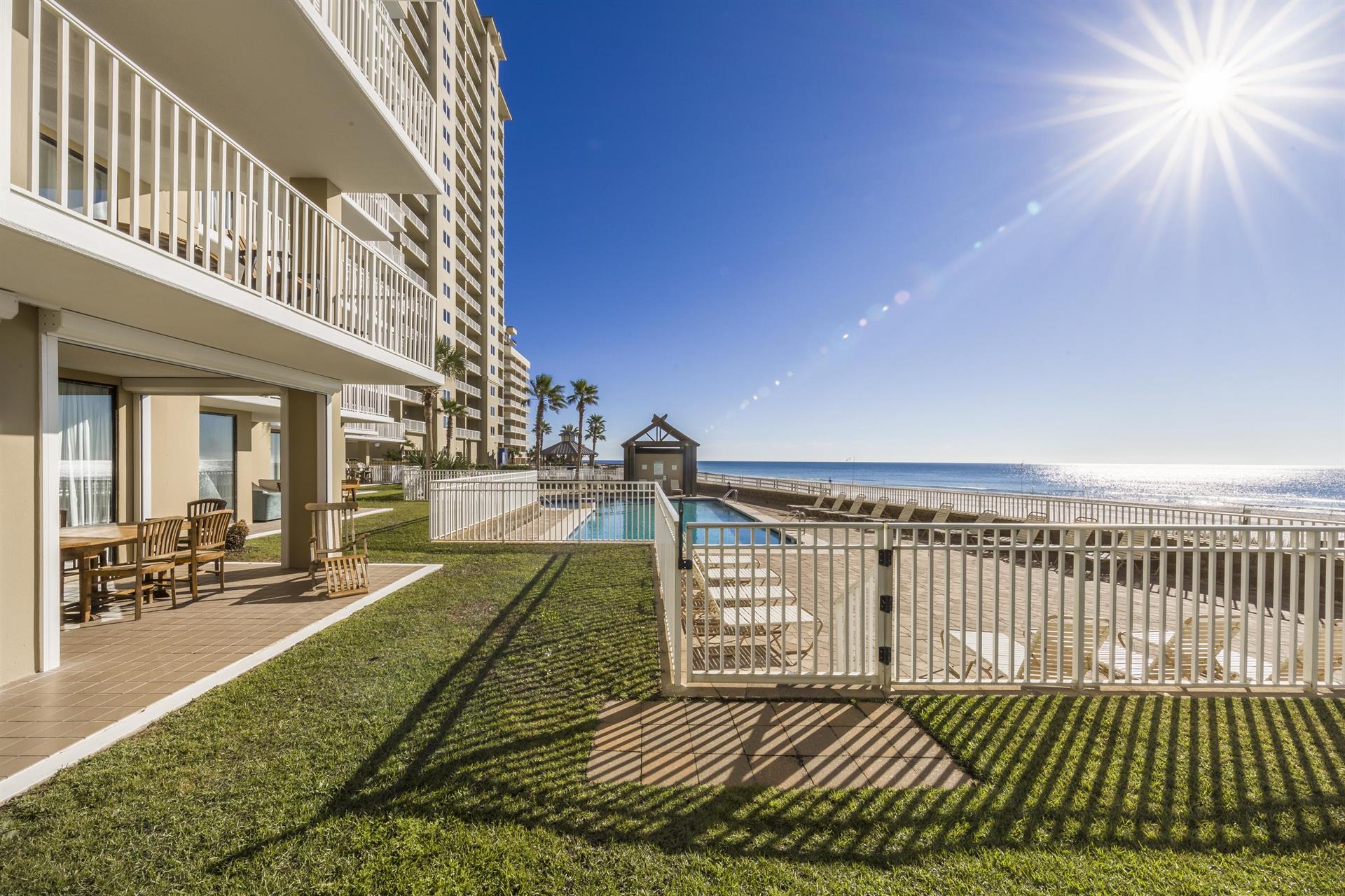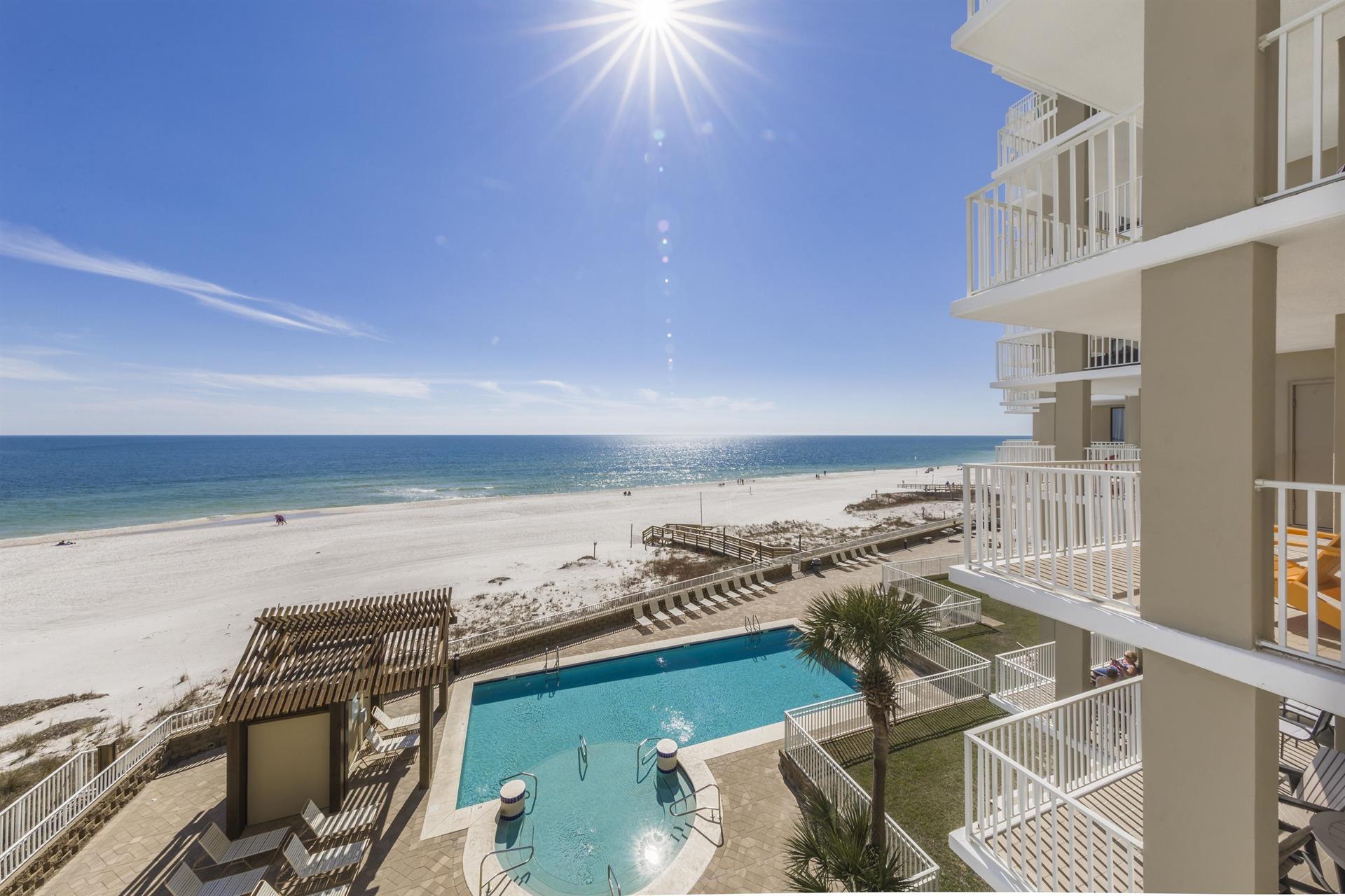 Sparkling Gulf-front pool and sugar-white sand beach are only steps from your condo and are easily accessible by a boardwalk. Your private balcony, accessible from your living room and Gulf-front master bedroom, is ideal for sunrise and sunset watching.Features and amenities • Beach view balcony accessible from the living room and bedroom
