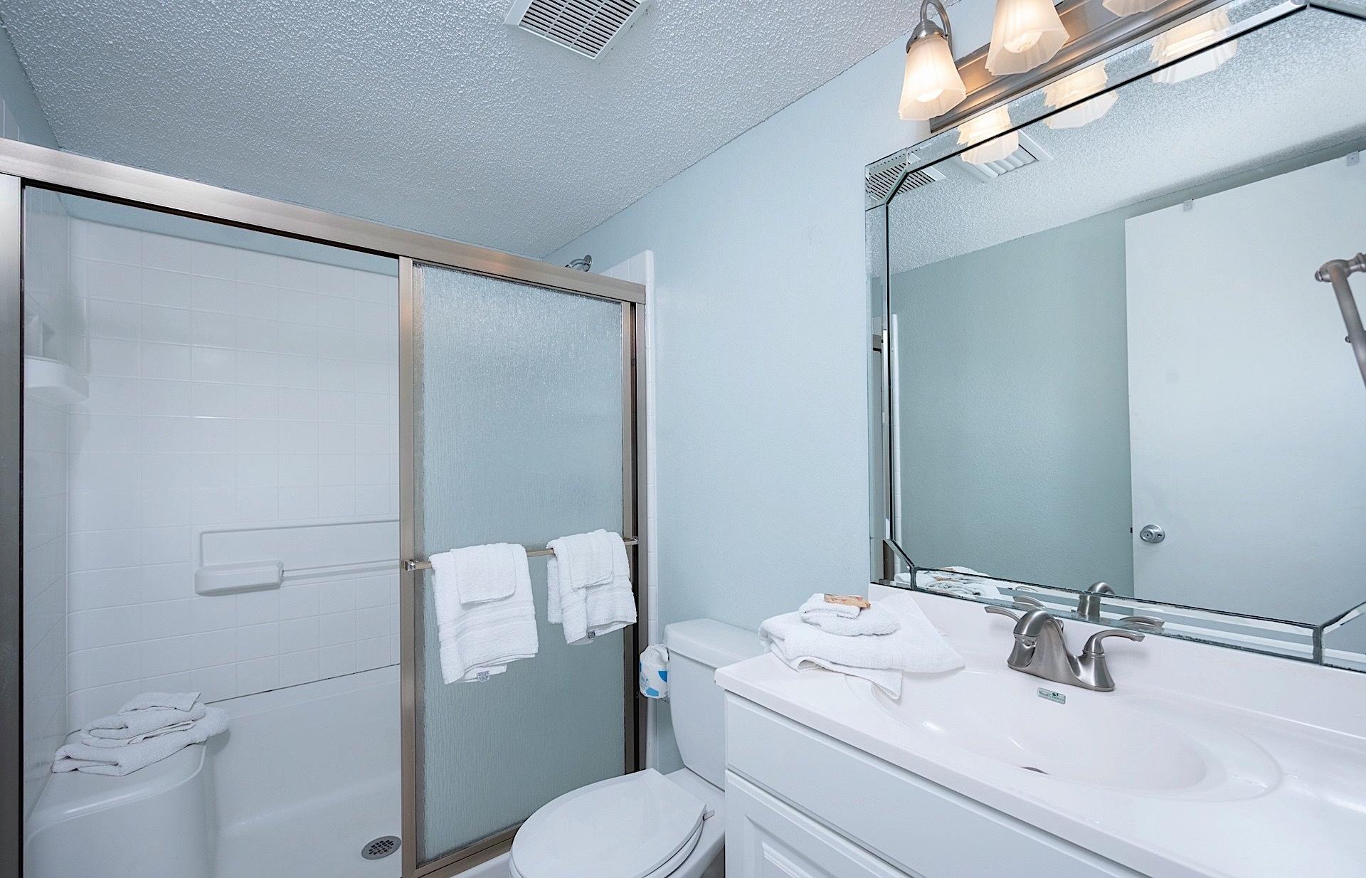 tub/shower with glass doors in the second bath. Sunswept is situated directly