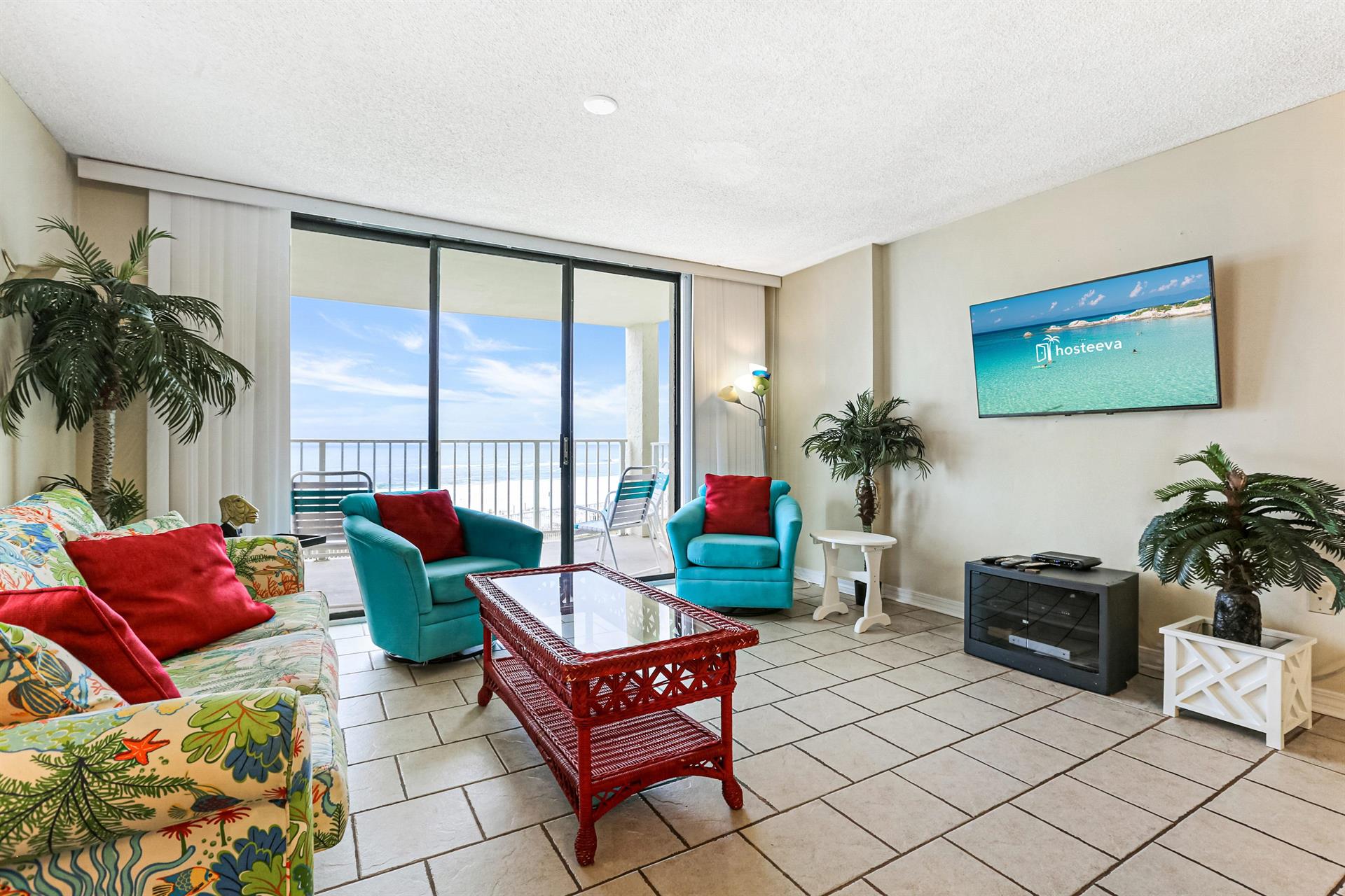 About This fully furnished beach view Sunswept condo by Hosteeva is located on the sugar-white beach and emerald green waters of the Gulf of Mexico. The condo has a spacious balcony overlooking the large swimming pool and the beach. You can enjoy your morning coffee or tea on your private balcony.