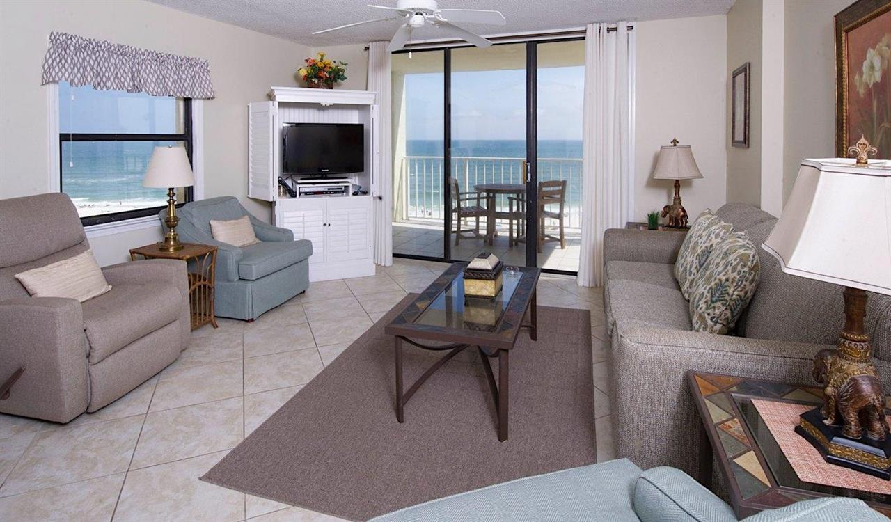 will enjoy the amazing view from the gulf front balcony just off of the living