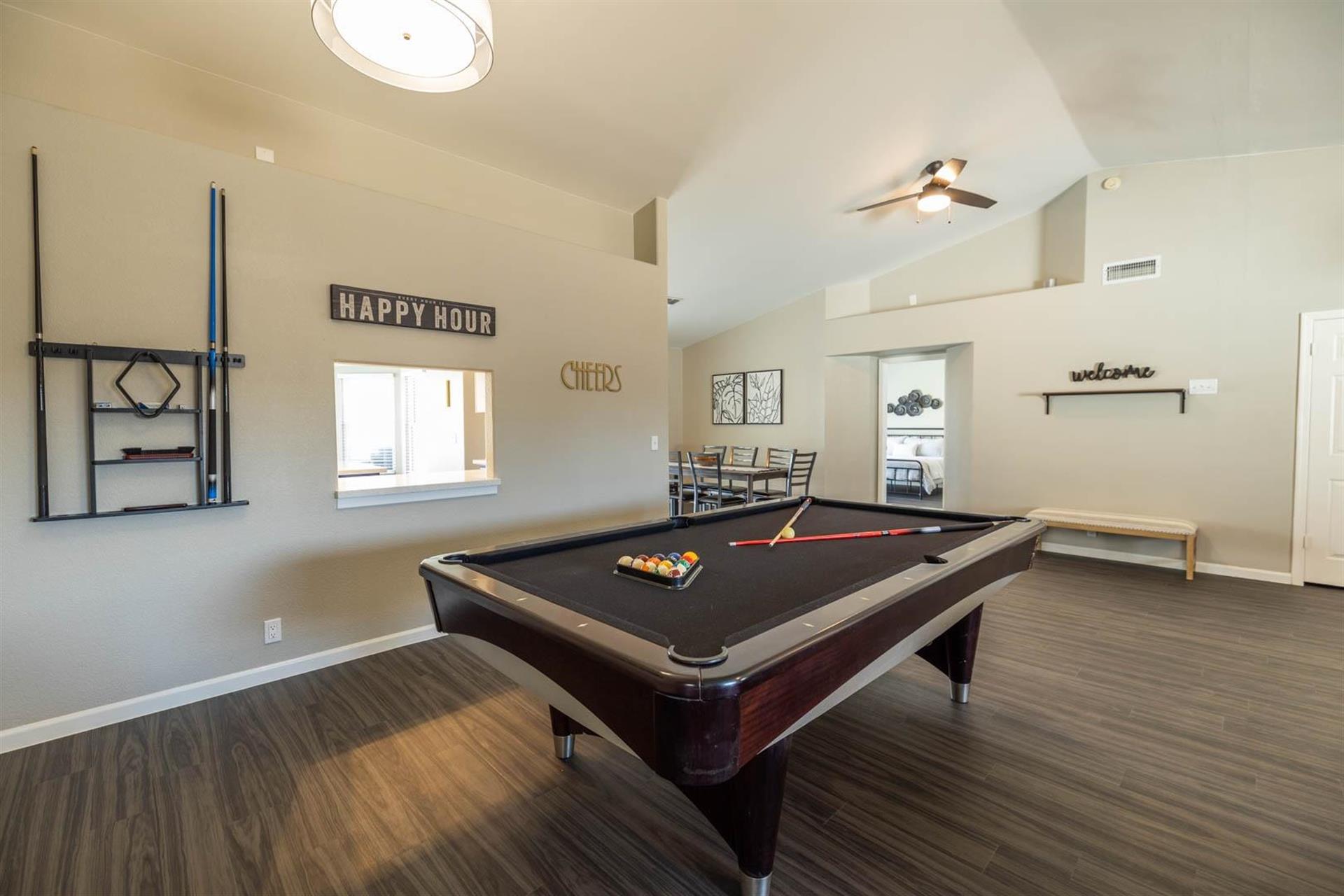 \- Fully equipped with hotel style amenities, plus a pool table, corn hole and