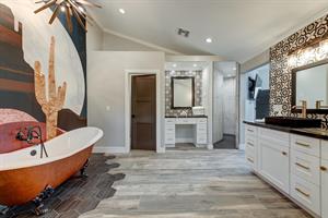 The Master Suite displays in its own right as a desert oasis. The plush linens