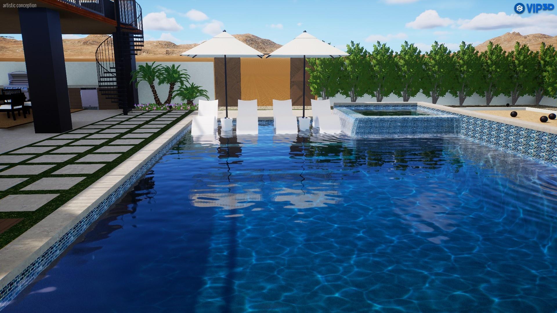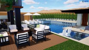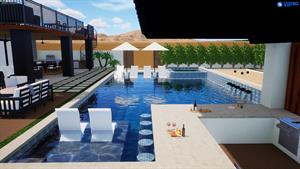 The outdoor space is designed for leisure in the lap of luxury. The resort