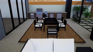 touches with industrial and is lavishly set up for entertainment, indoor and