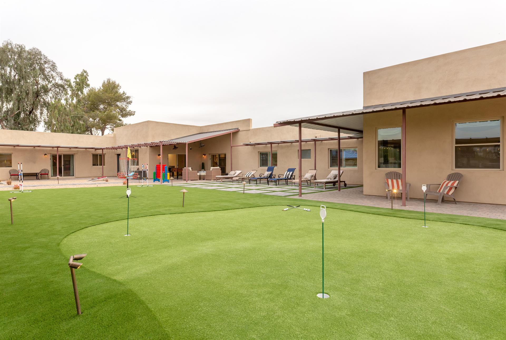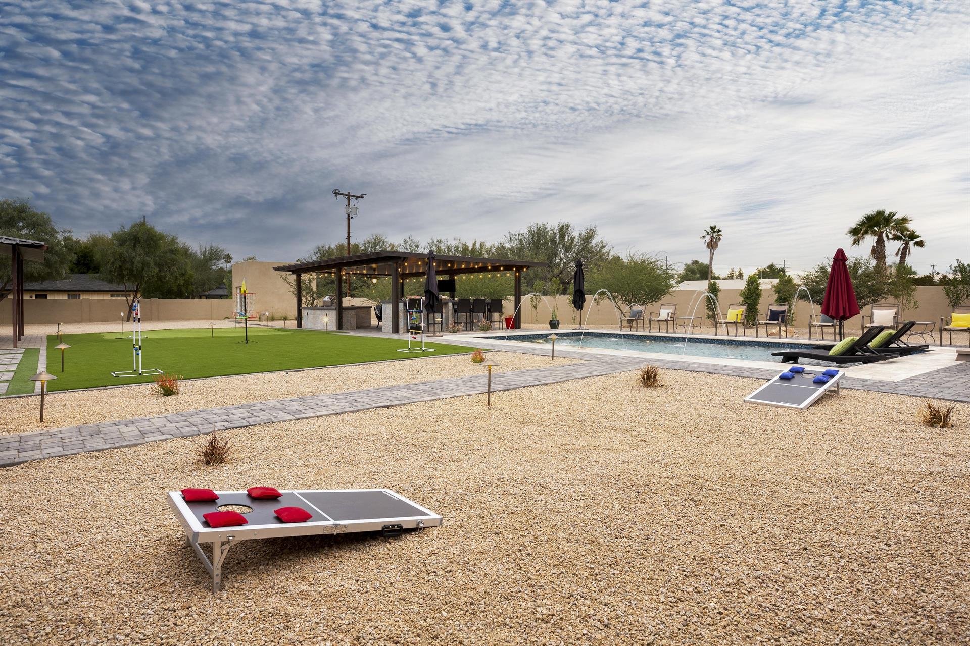 volleyball courts, putting green, and games like giant Jenga and giant Tic Tac