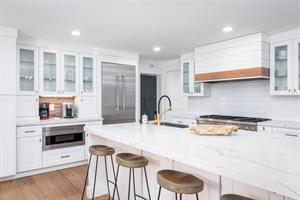 This open concept gourmet kitchen is elegantly designed to feed and host your