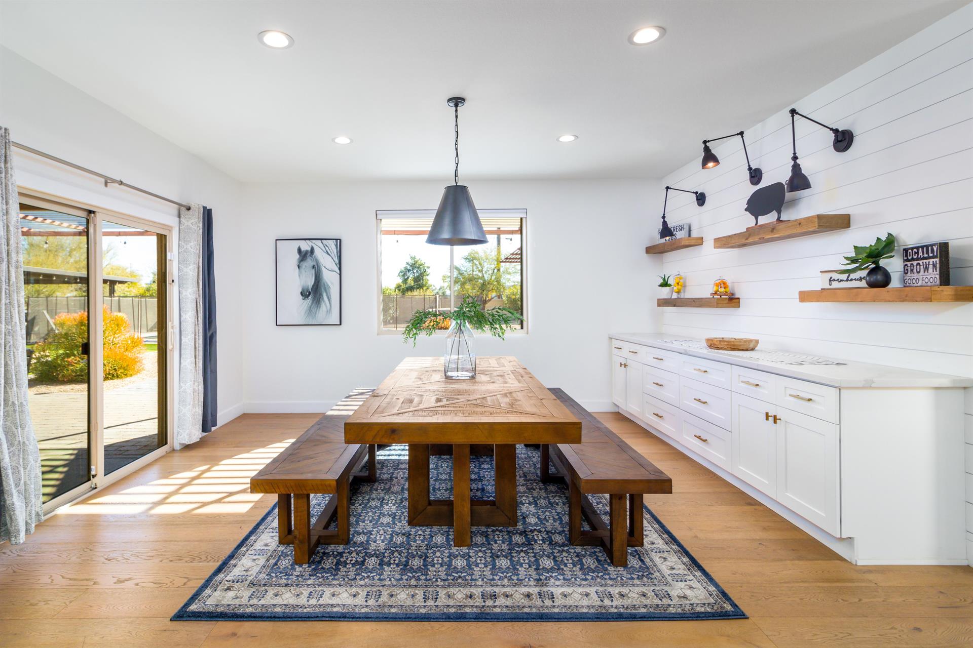 and large sliding glass doors open to the enormous backyard, providing