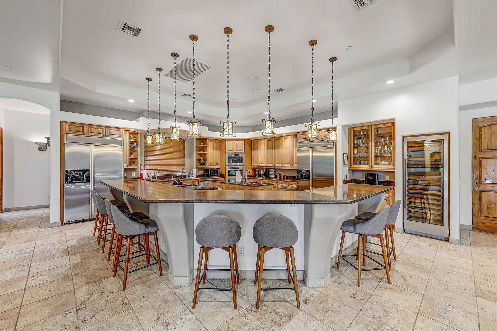 · Oversized island with breakfast bar seating for 8