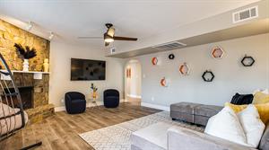 comfy sectional where everyone can gather for a movie on the smart tv or to