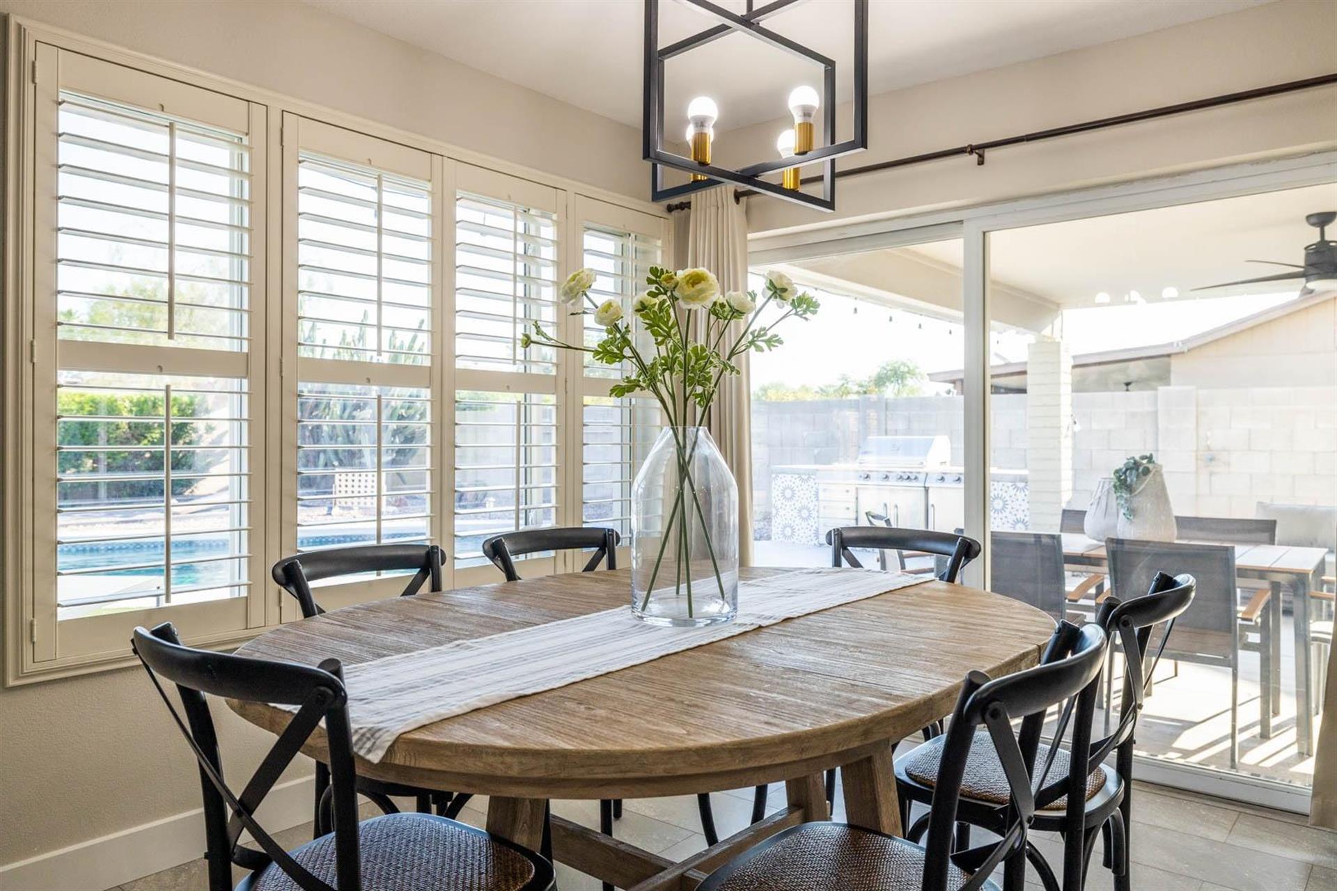 Open the stylish plantation shutters and let the sun in at this natural-modern