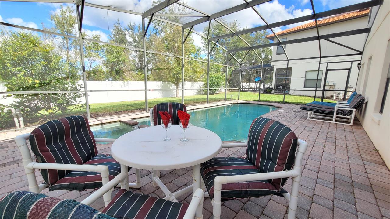 bedroom, 2.5 bathroom home has a private screened-in pool, which can be heated