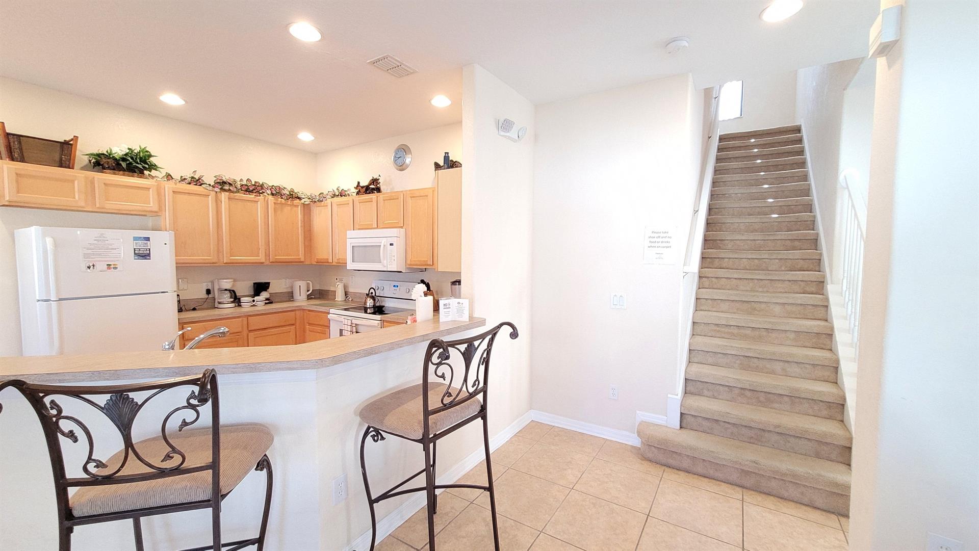 equipped kitchen, with all appliances and also a full sized washer and dryer