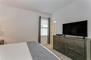 #4. King bedroom with built in closet, TV, dresser, nightstand