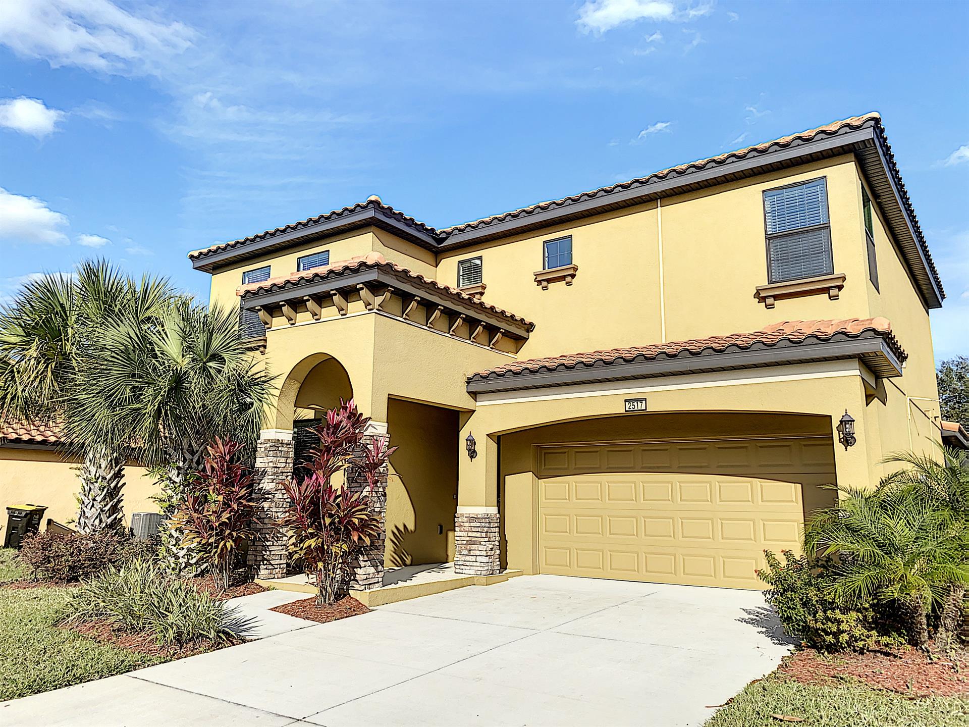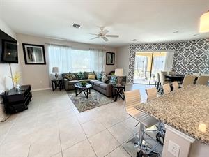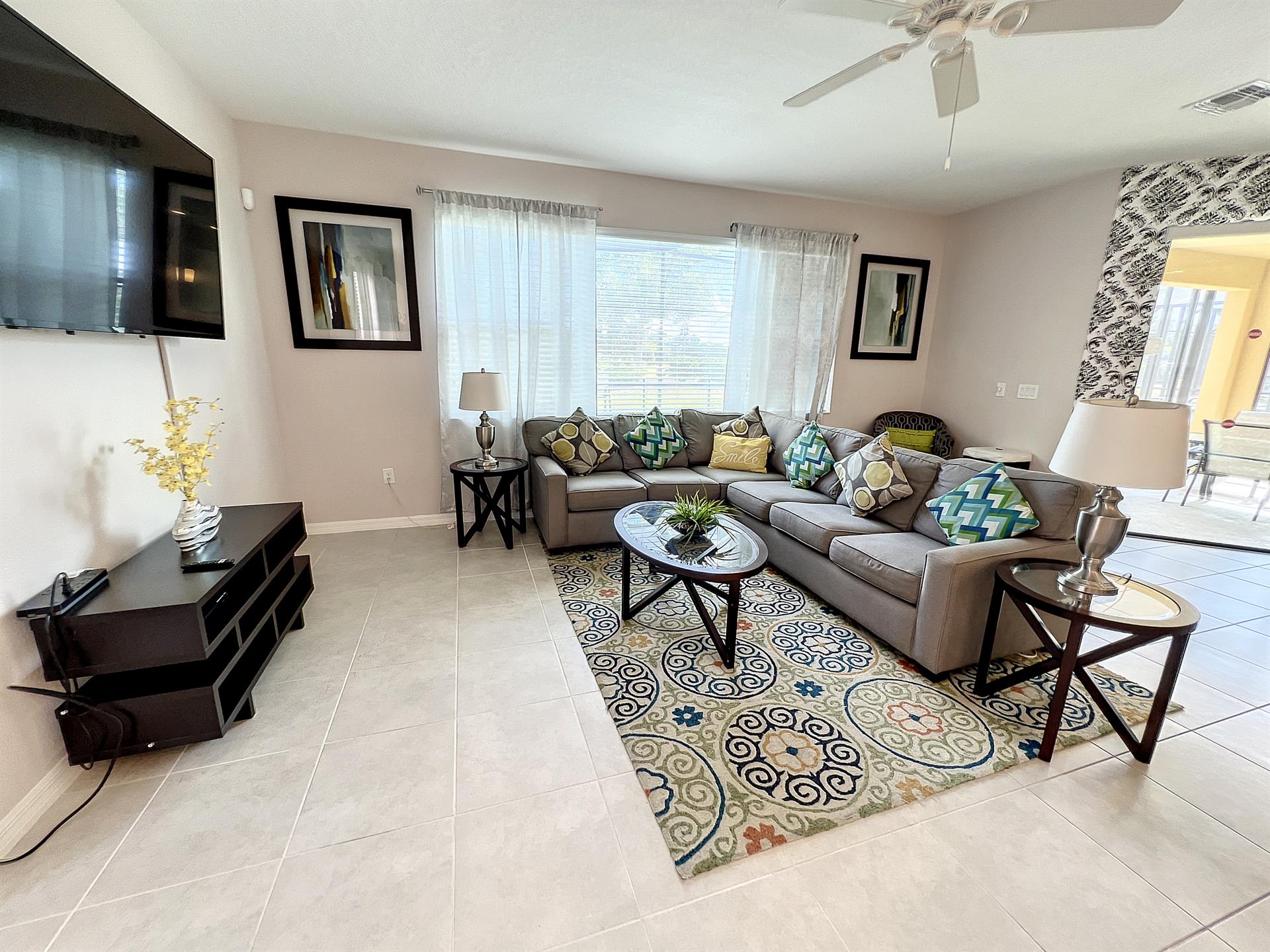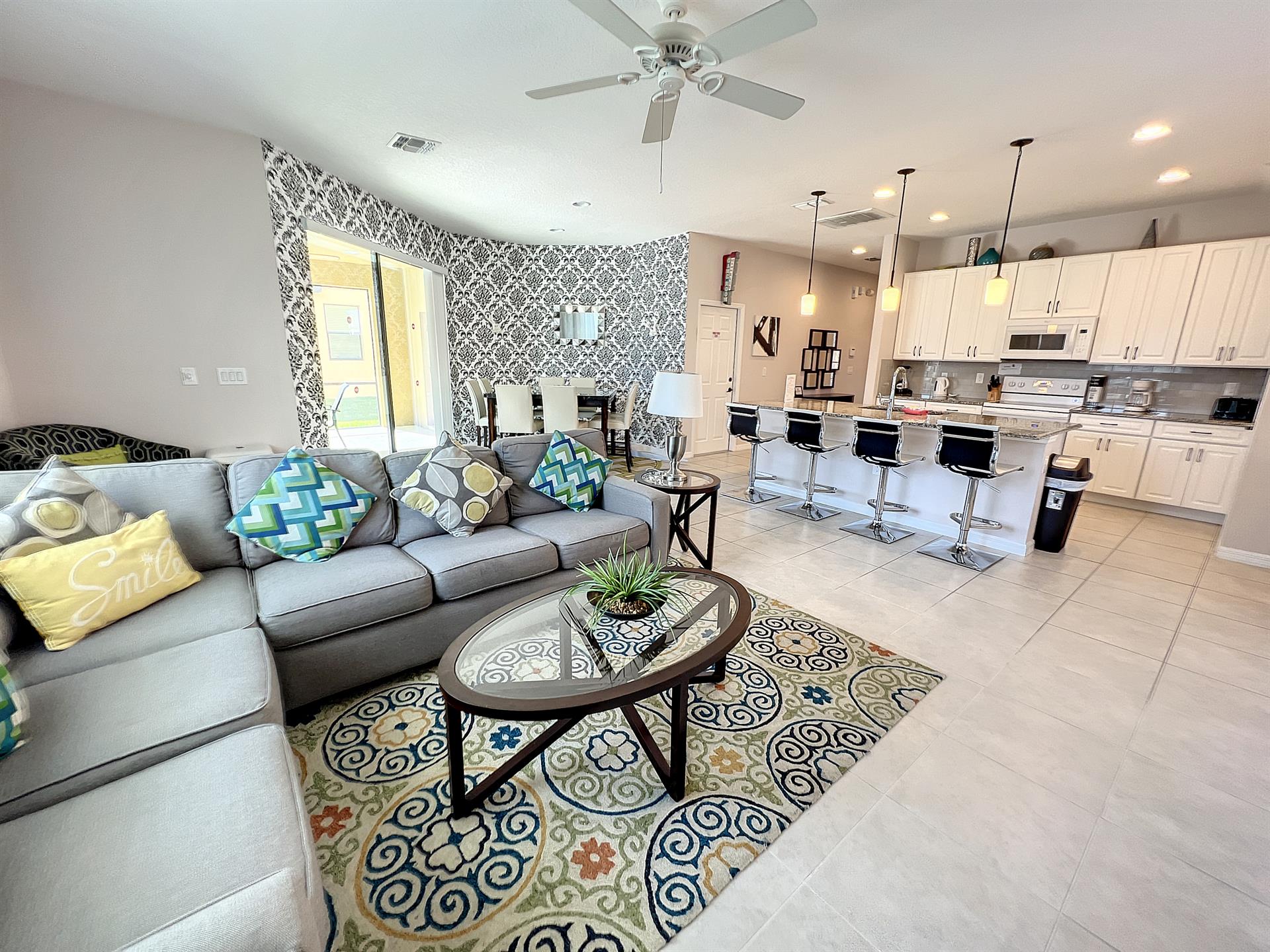Welcome to Magical Xpress, a 5 bedroom, 4 and a half bathroom home located in a private gated golf community. If you like a colorful adventure, this home is for you! The dining room accent wall catches your eye as you enter through the foyer. Continuous pops of color engage you throughout the house creating a fun & thriving atmosphere. If that doesn't do it for you, the pool private with a peaceful view of the palm tree forest will.