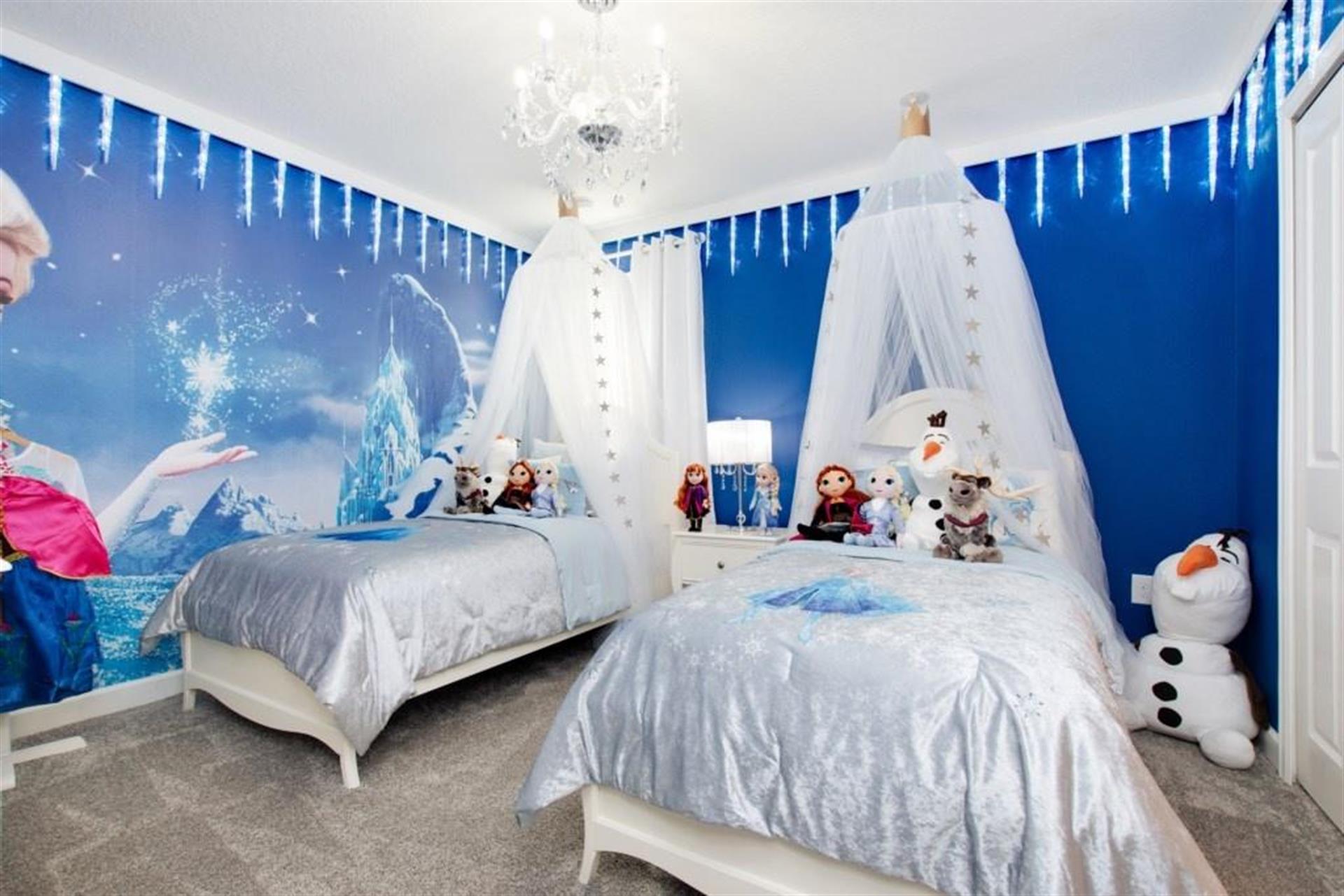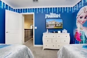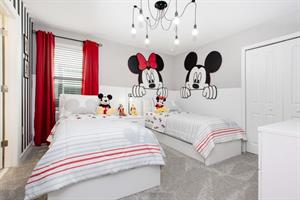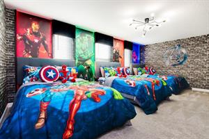 bedroom with 3 full beds and 3 themed bedrooms with 2 twin beds in each. There