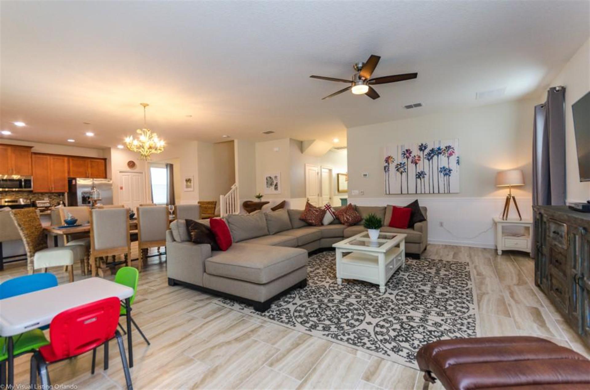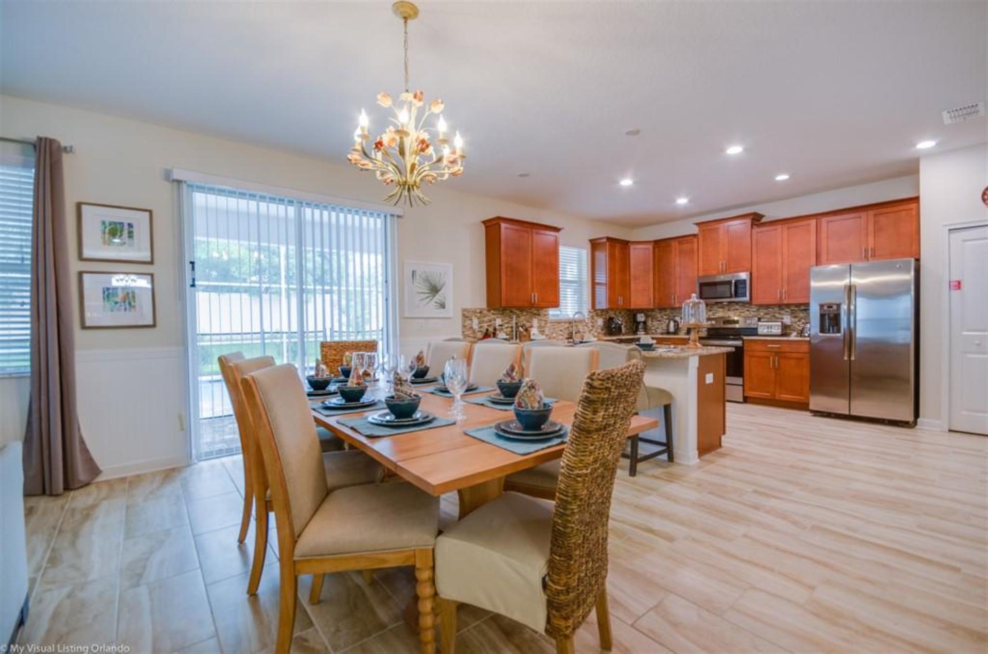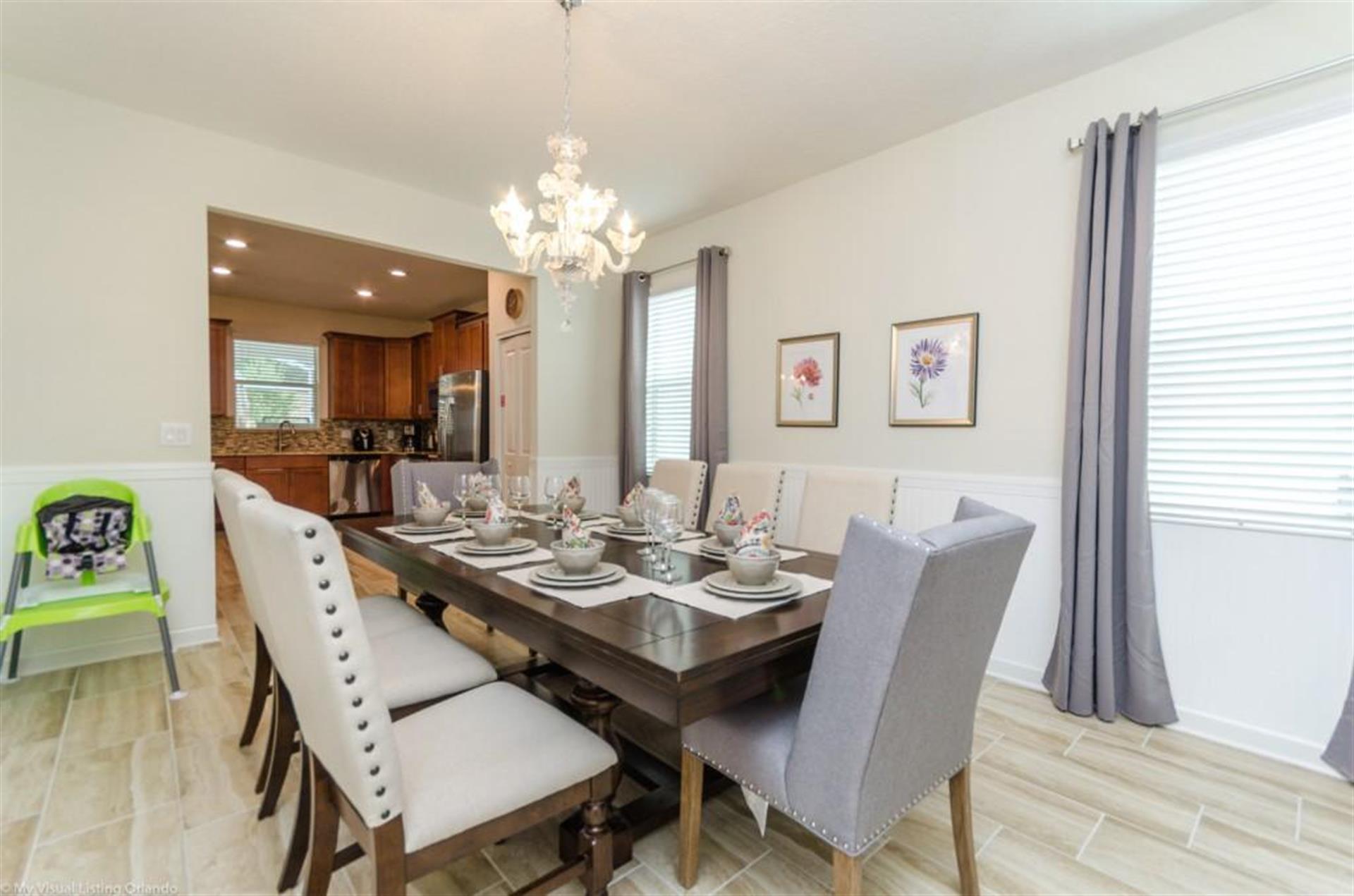 table with seating for 8 next to the living room. You will also have a