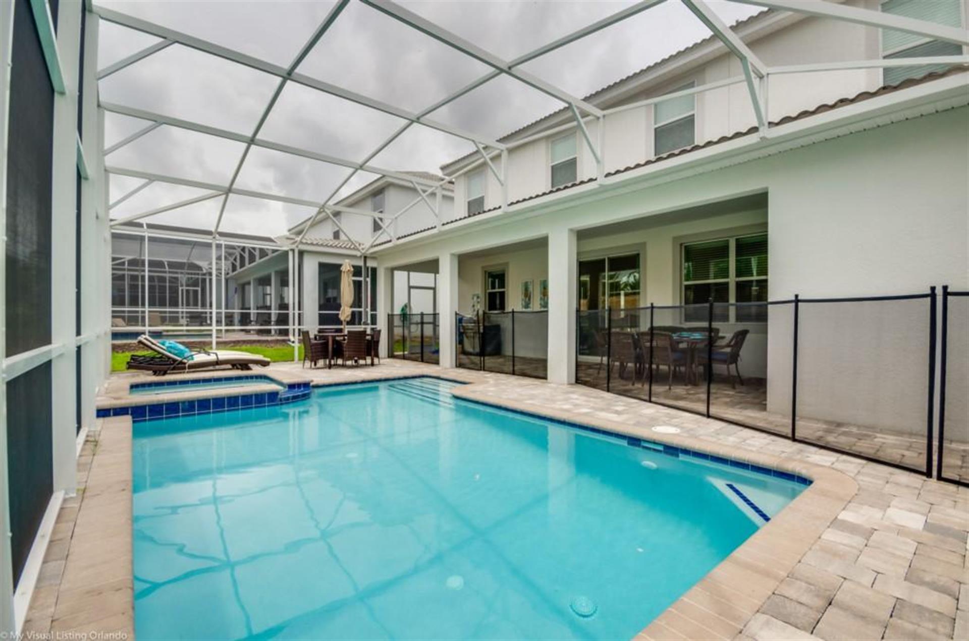 Pool area - Screened lanai with covering from the rain. The Pool has attached
