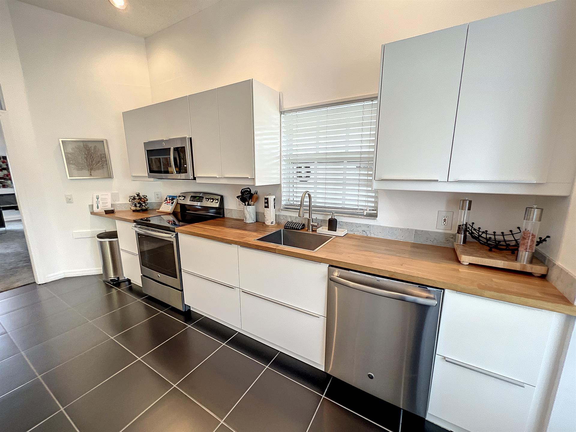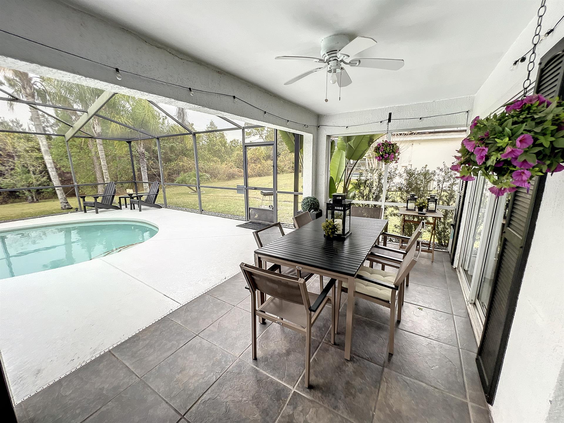 When stepping into Villa Dutches, you'll be greeted by the spacious living area which boasts a stunning open-floor plan. Whether you're looking to cook meals with the family or have a movie night together, there's ample seating for everyone's enjoyment. With sliding glass doors to the pool & patio area, you'll always be just steps away from your own private oasis. With an outdoor seating and dining area for everyone, a perfect poolside day is always right outside.