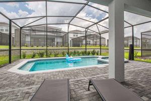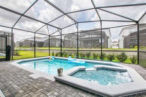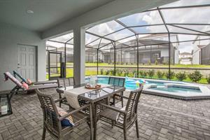 Private screened pool & Jacuzzi with covered lanai & patio furniture