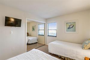 The Guest Bedroom has a wall mounted flat screen HDTV and two Twin beds. The