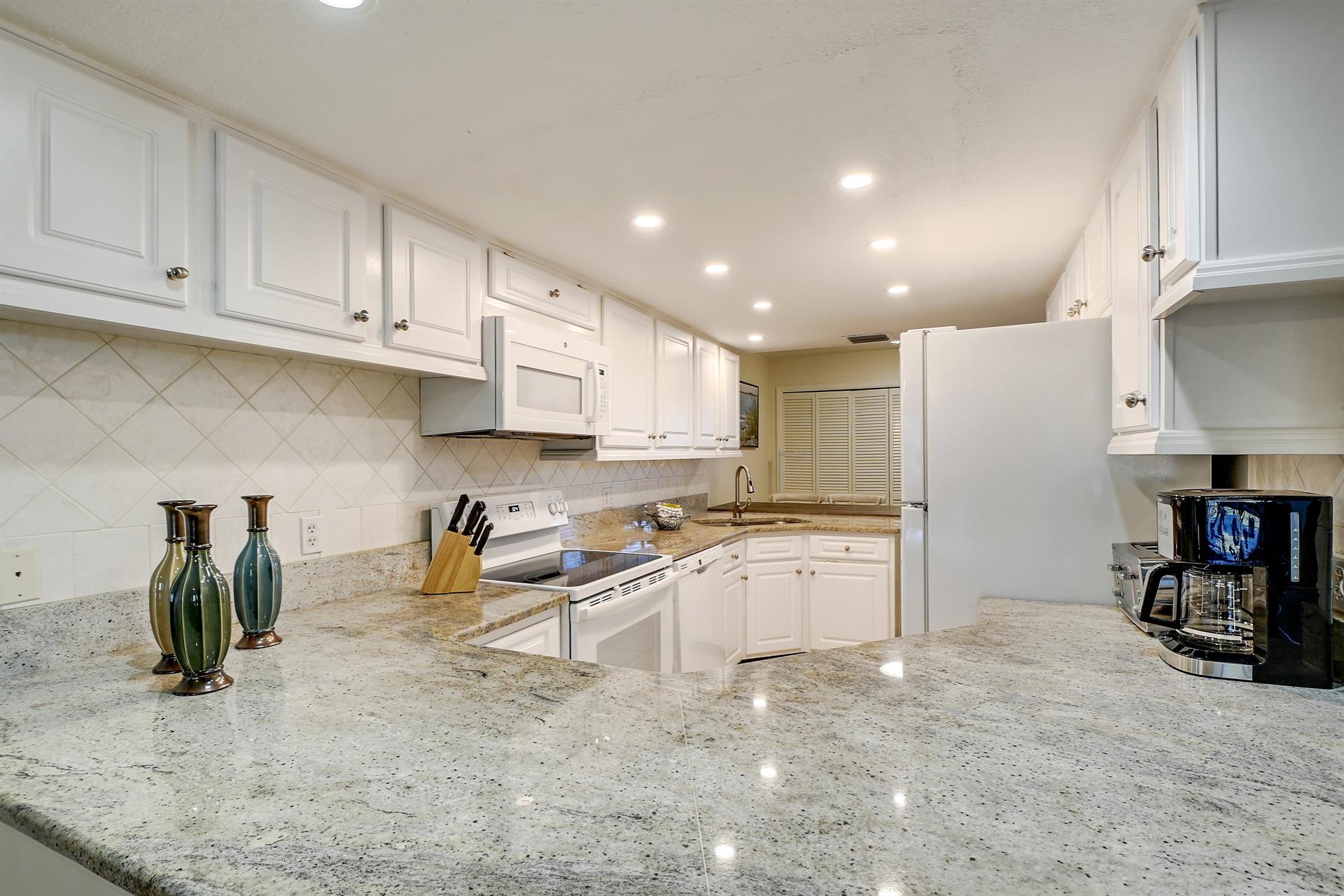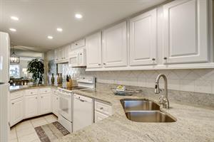 The kitchen has a plethora of granite counter space, full size appliances, and