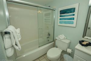 and its own private Bathroom. This bathroom has a bathtub/shower combination.