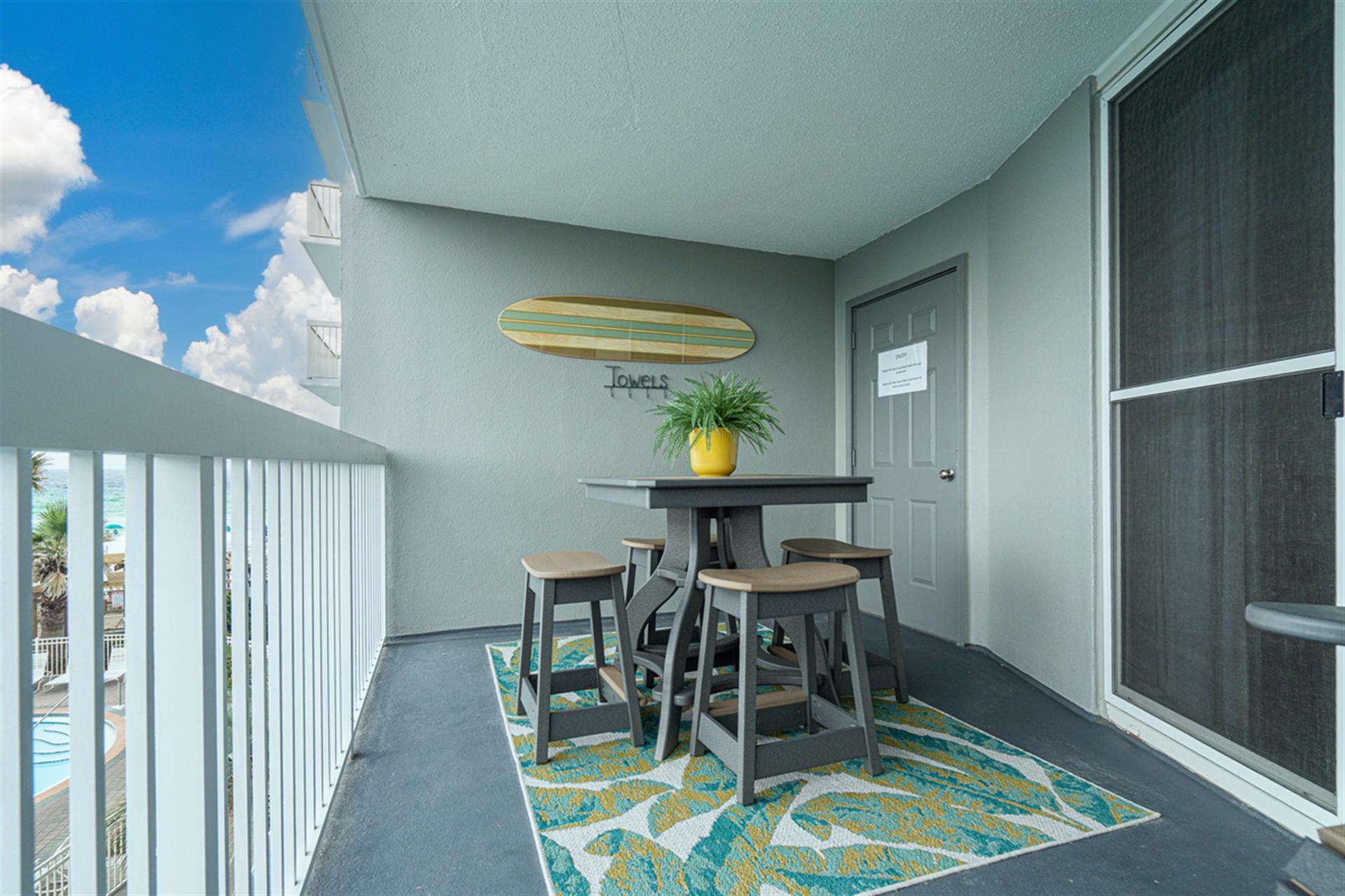 The condominium has a private balcony shared by the living room and master bedroom offering a gulf-view towards the beach and emerald green waters and long views to the East along the shoreline of the Gulf of Mexico. The balcony has all new chairs and even a hi top table. The natural beauty of the Gulf Coast will astound you. The balcony is the perfect place to cuddle with your significant other as you watch the sun dip into the Gulf in one of our renowned sunsets or while enjoying your morning coffee watching the sun rise to start a new vacation day!