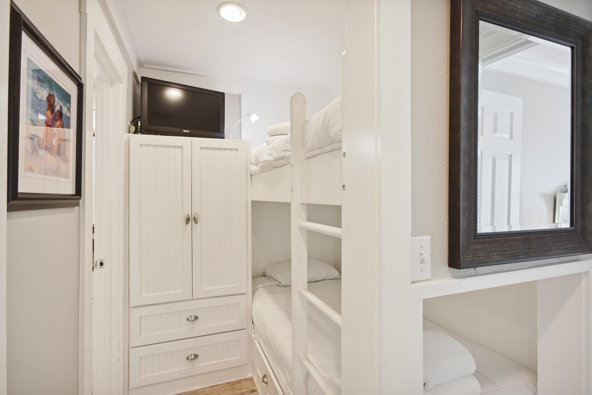 There are also custom built in bunkbeds with their own bathroom. This unit is