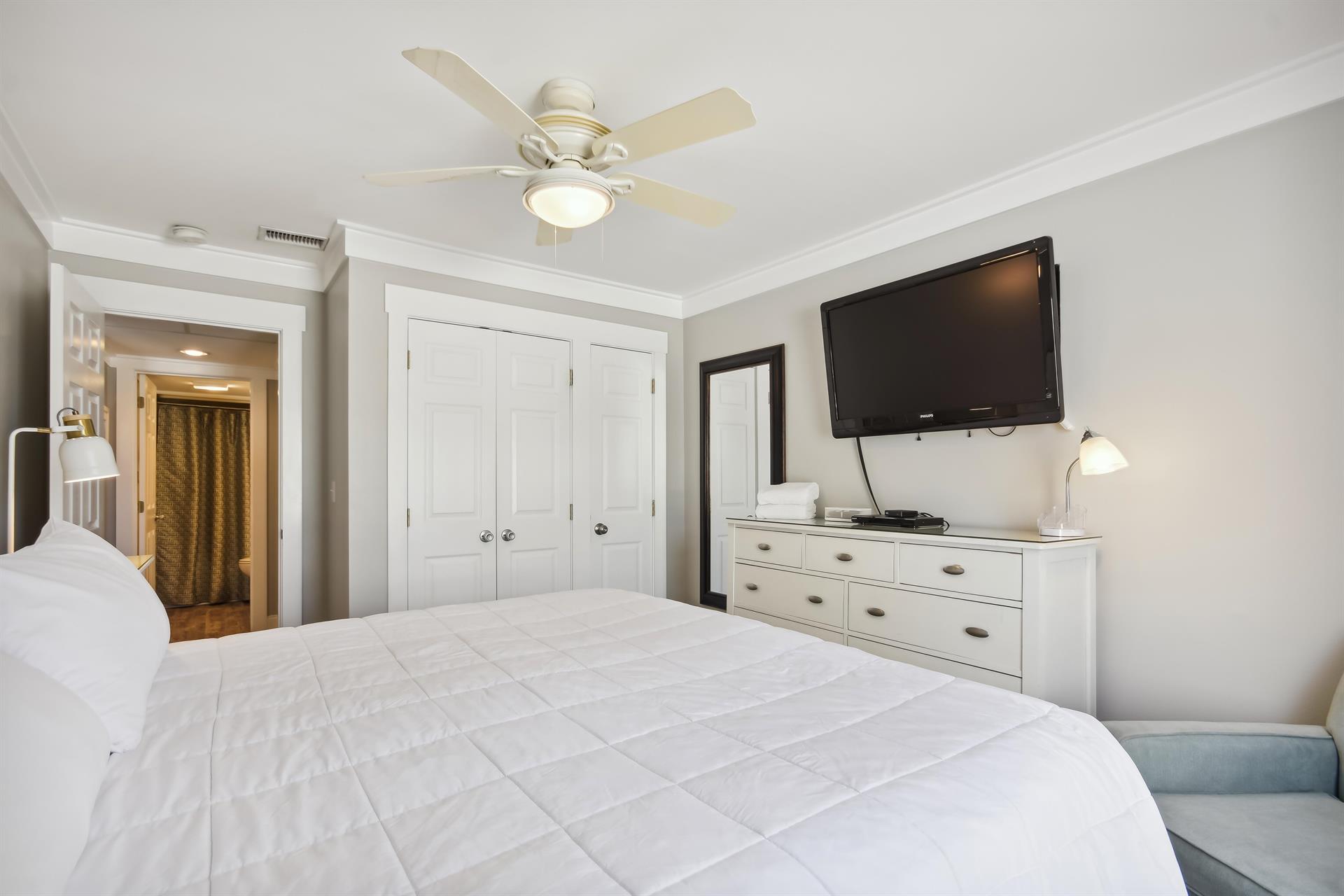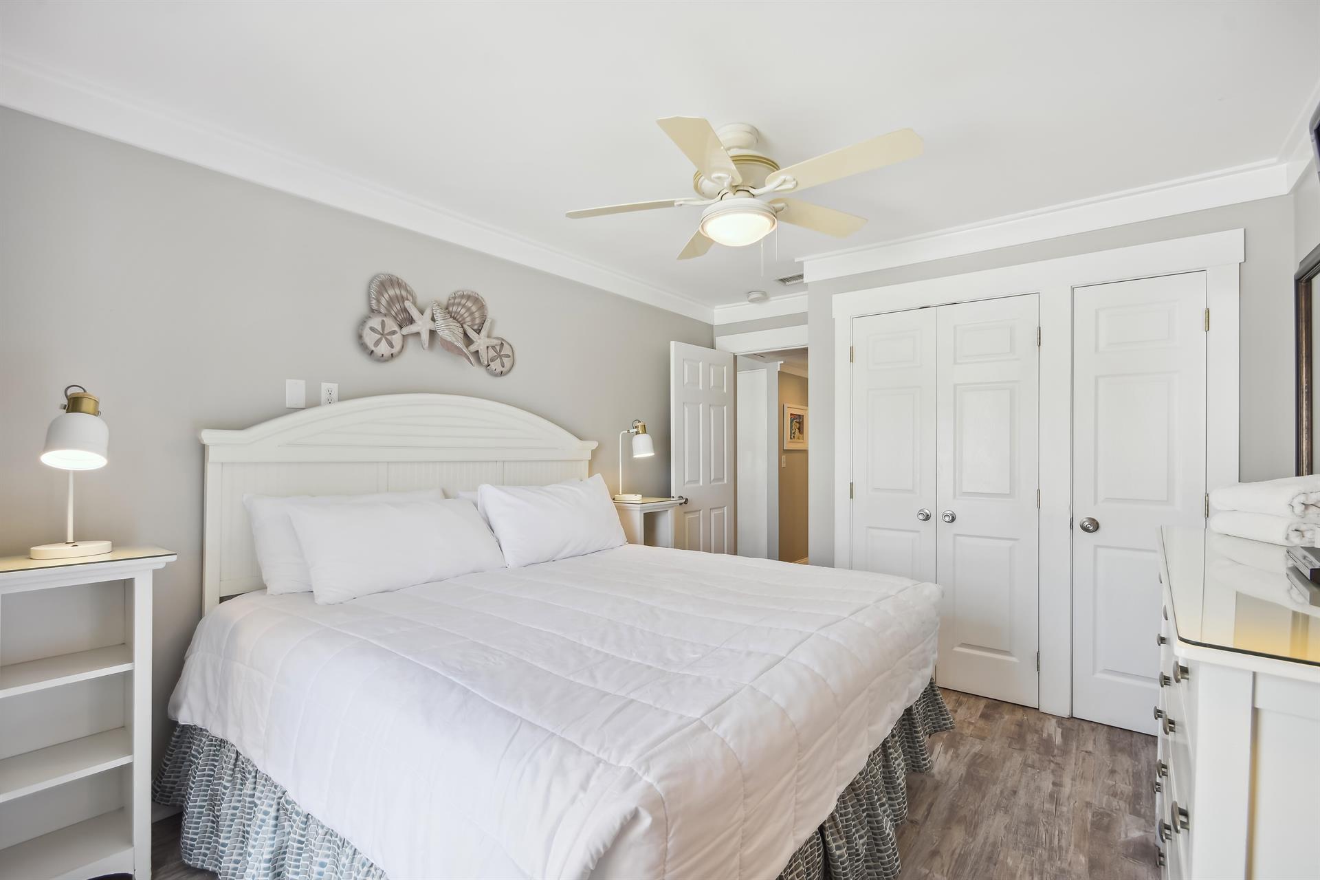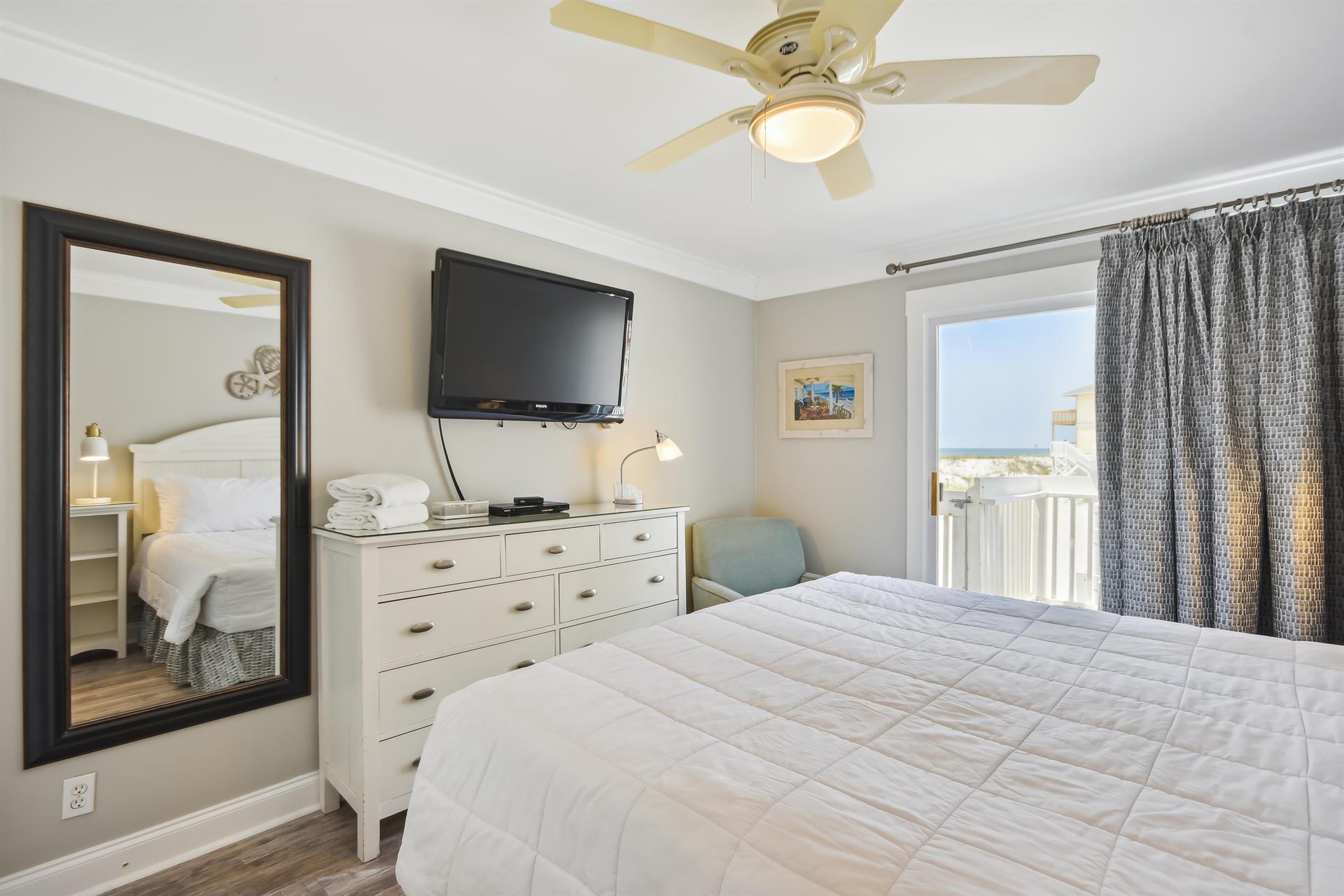 The master bedroom has a king size bed and also has amazing views of the Gulf.