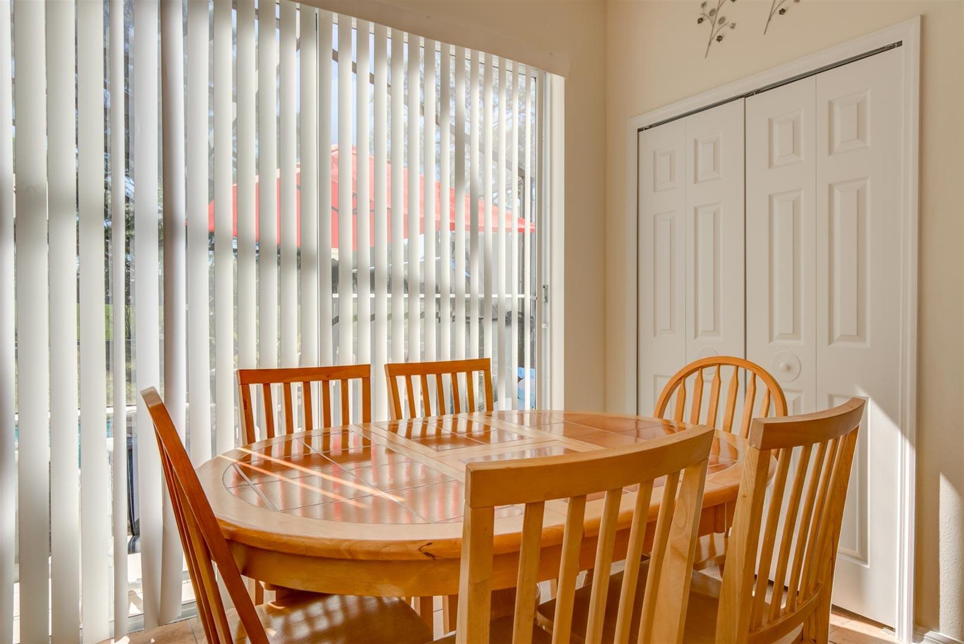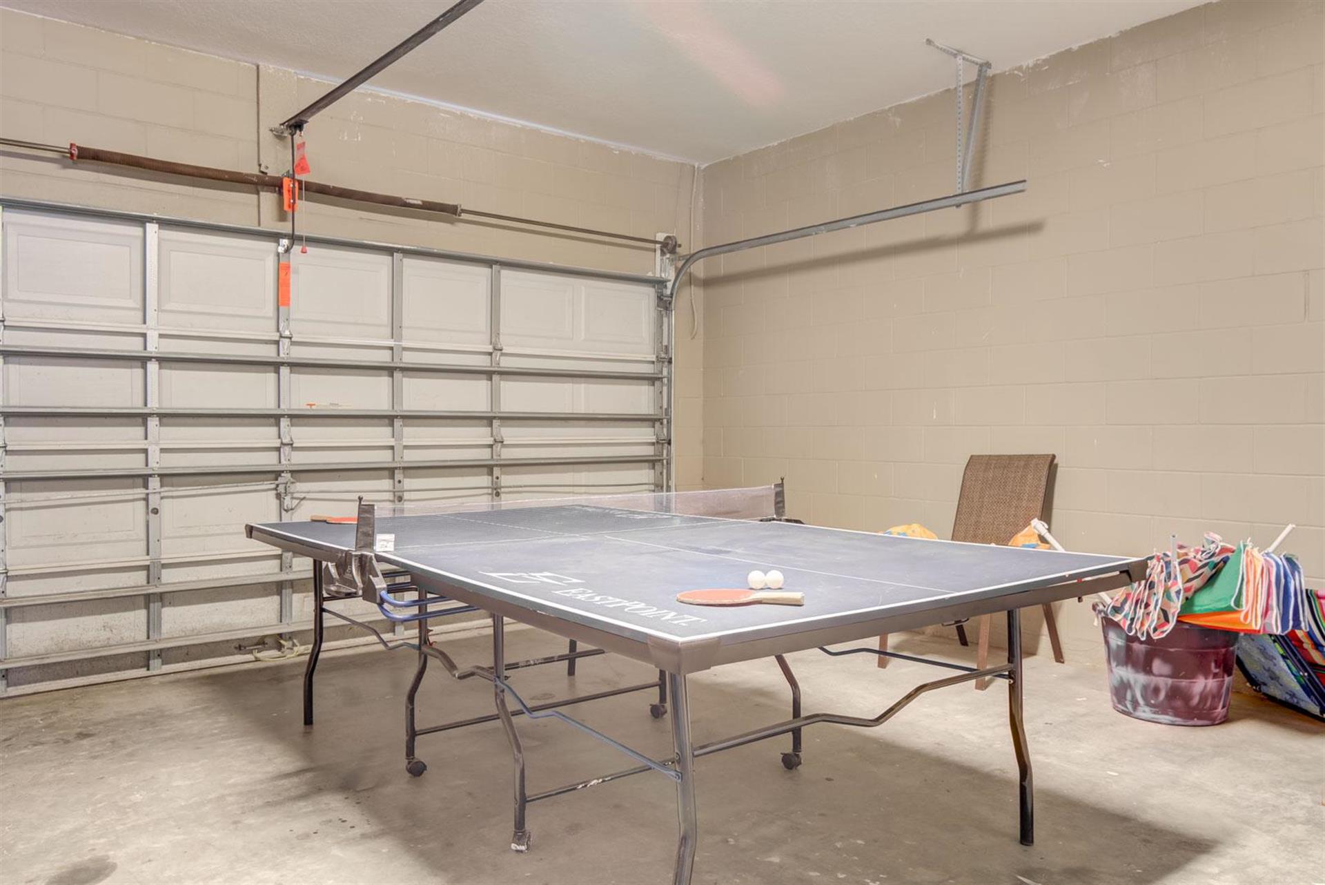 Looking to be 20 or so minutes from Disney? Want to stay in a 6-bedroom, 4.5-bathroom vacation villa with private pool, two games rooms, and views of the golf course? Look no further. This is the house for you. Let’s see what this home has to offer. There are 6 bedrooms. The first bedroom, the master bedroom, has a queen-size bed, views of the pool, and an en-suite bathroom with garden tub and walk-in shower. The second and third bedrooms also have queen-size beds, and the fourth, fifth & sixth bedrooms all have 2 single beds in each. The queen beds are great for couples and older children wanting a large bed to themselves. The single beds are perfect for the younger members of the family. The kitchen is large and has modern appliances, lots of countertop space, a small island that doubles as a breakfast bar with two stools, and a breakfast nook that has a table and seating for up to 6 people. There are also glass patio doors that let in plenty of natural light as well as let out anyone who wants to go to the pool area (more on this in a bit). If you want to eat somewhere a little more formal, try the formal dining room. Here, there are built-in bookshelves, and you can sit up to 6 people. It’s the perfect place for everyone to enjoy a meal together around the same table. There are two living areas: a formal and informal living area. The formal living area is at the front of the house and has two comfortable, crème sofas. This is the perfect place for people to sit down together and enjoy a quite conversation. The informal living room is at the back of the house and is large and has vaulted ceilings, making the room feel even bigger. There are 3 sofas, a large flat screen TV, and access to the pool via patio doors, which let in a lot of natural light. Let’s head outside to the screened-in pool area. Here, you’ll find a large pool to cool off in, 5 sun loungers for those who want to work on their tan, views of the golf course, and a patio table and 4 chairs with an umbrella for those who want to relax outside in the shade with their favorite ice-cold beverage. If you want some indoor entertainment, you have two choices. You can go to the garage, which has a full-size table tennis table, or you can head upstairs to the other games room that has an air hockey table, a desk for setting up your laptop on, and a foosball table.