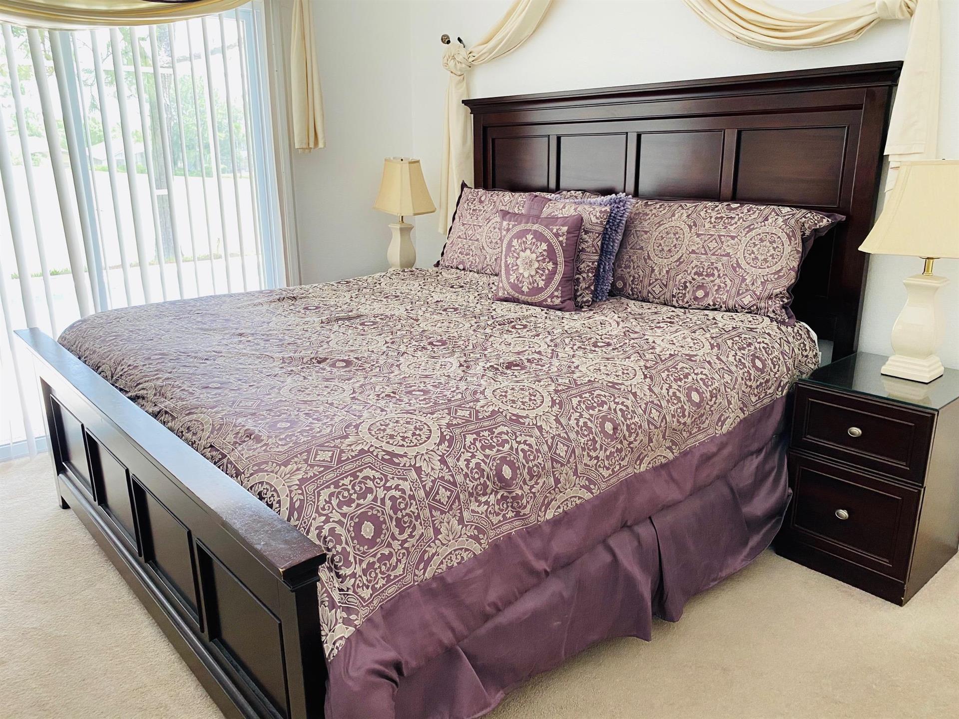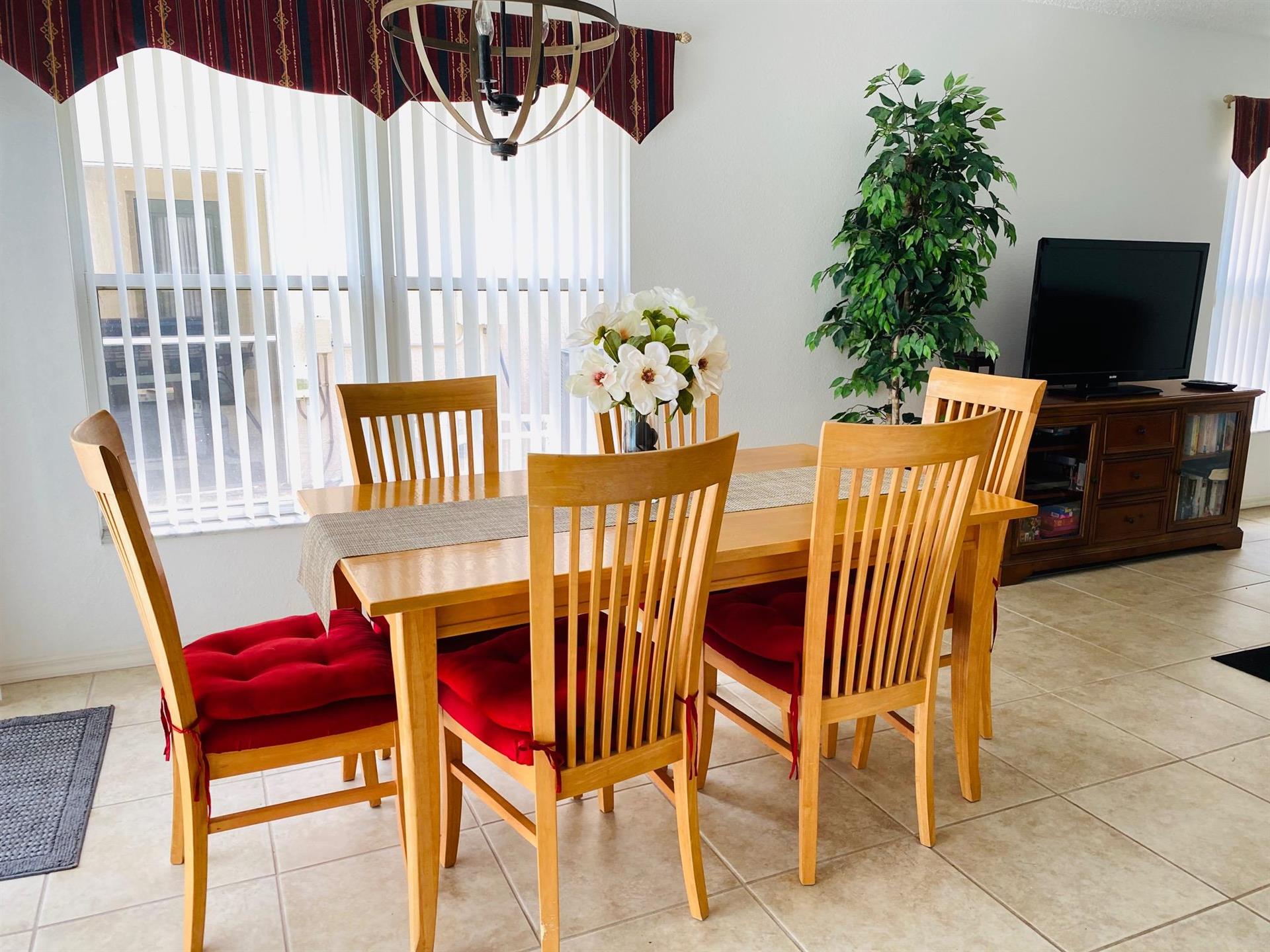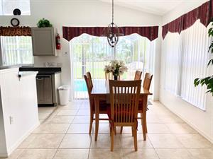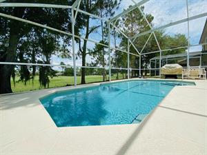 Located in the Southern Dunes Golf & Country Club, this 3-bedroom, 2-bathroom vacation villa with private pool sleeps up to 6 people. Let’s see what this house has to offer. The first bedroom, the master bedroom, has views of the pool area, a king-size bed, and an en-suite bathroom. The second bedroom has a queen-size bed. And the third bedroom has two single beds, which are great for younger members of the family. The kitchen is fully equipped with utensils, pots, pans, bowls, small kitchen appliances, and more. It has modern appliances, views of the pool area, and an island that doubles as a breakfast bar with two stools. Just off of the kitchen is the dining area. It has a rectangular table and six chairs. It also has glass patio doors that let in plenty of natural light as well as let out anyone who wants to go to the pool area. The living room is a good size and has a confortable sectional sofas, a large flat screen TV, and vaulted ceilings. This is the perfect place to come back to after a long day out at the parks. Here, you can just sit back, relax, and watch a good movie on the large TV. Let’s head outside to the pool area. Firstly, it’s screened in to keep those pesky bugs out. It also has a lagoon-shaped pool, views of the golf course, and a patio table, four chairs, and an umbrella for those who want to sit in the shade with their favorite ice-cold beverage and watch people play golf. Did we mention there is free Wi-Fi Internet access?