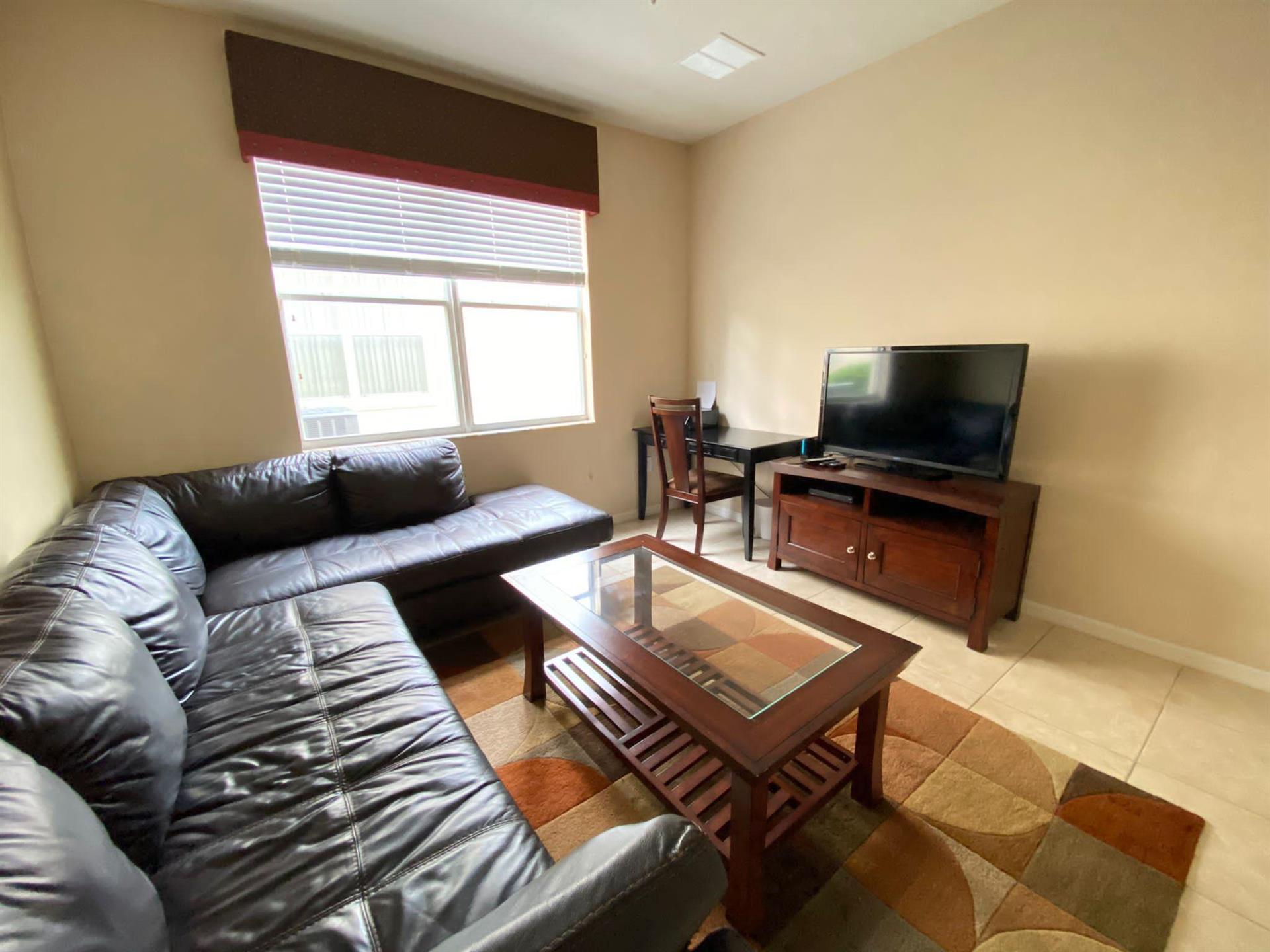 This place is great for a very large family or two families traveling together with kids. The kitchen is very swish. It has updated stainless steel appliances, and an island that doubles as a breakfast bar with seating for up to 4 people. Behind the breakfast bar are glass patio doors that lead to the pool area. If you need more than 4 seats, there’s a modern, classy formal dining room suite with 6 seats. This is the perfect place for everyone to come together and enjoy a meal.