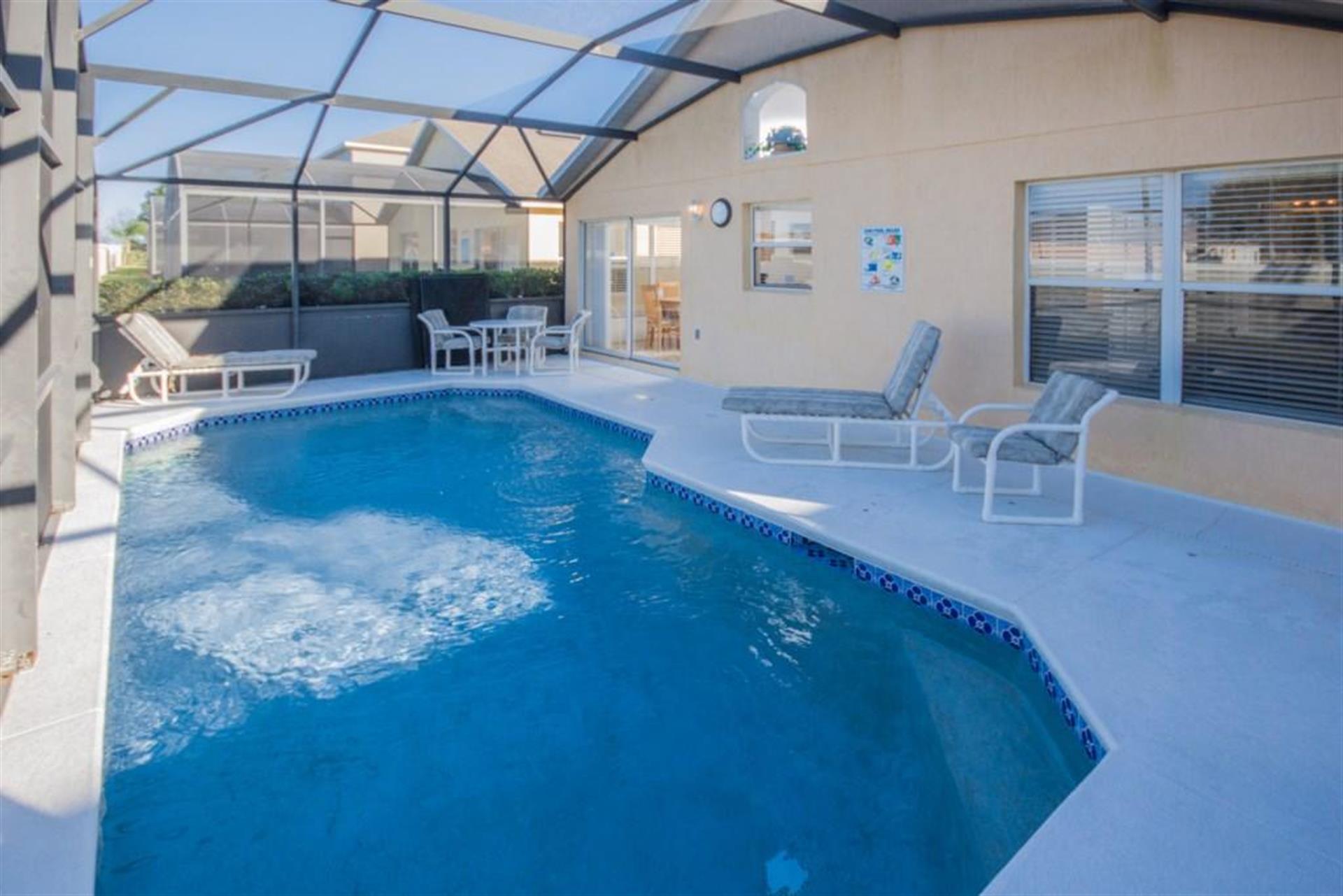 If you want to cool off from the Florida heat, head to the screened-in pool area at the back. Here, you’ll find a large, refreshing pool for everyone to enjoy. And for those who want to work on their tan, there are sunbeds dotted around the pool area.
