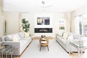 The spacious and cozy living area offers an open floor plan for easy