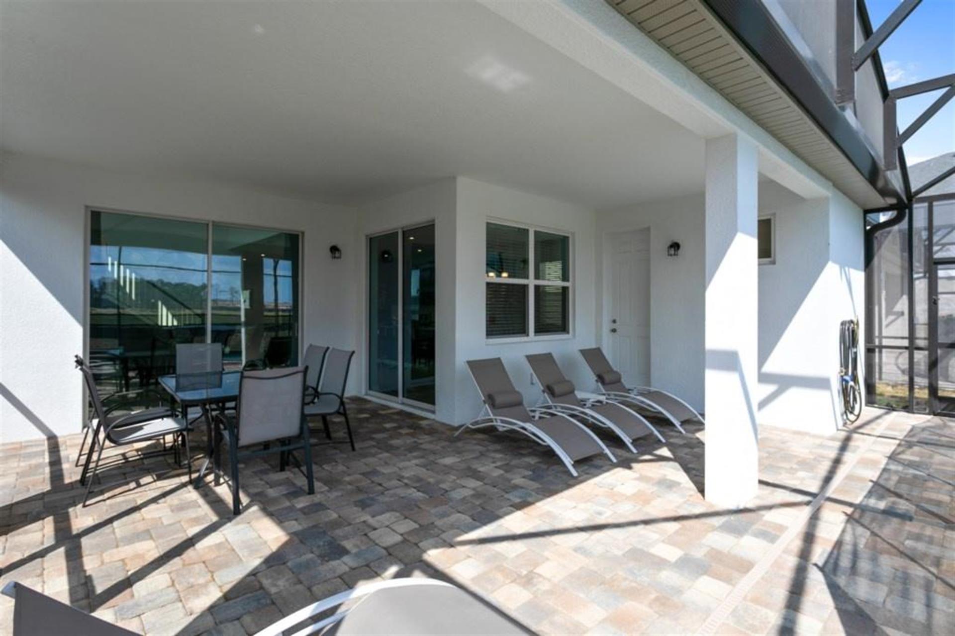The Outdoor Space – features a block paved pool deck with a covered lanai area