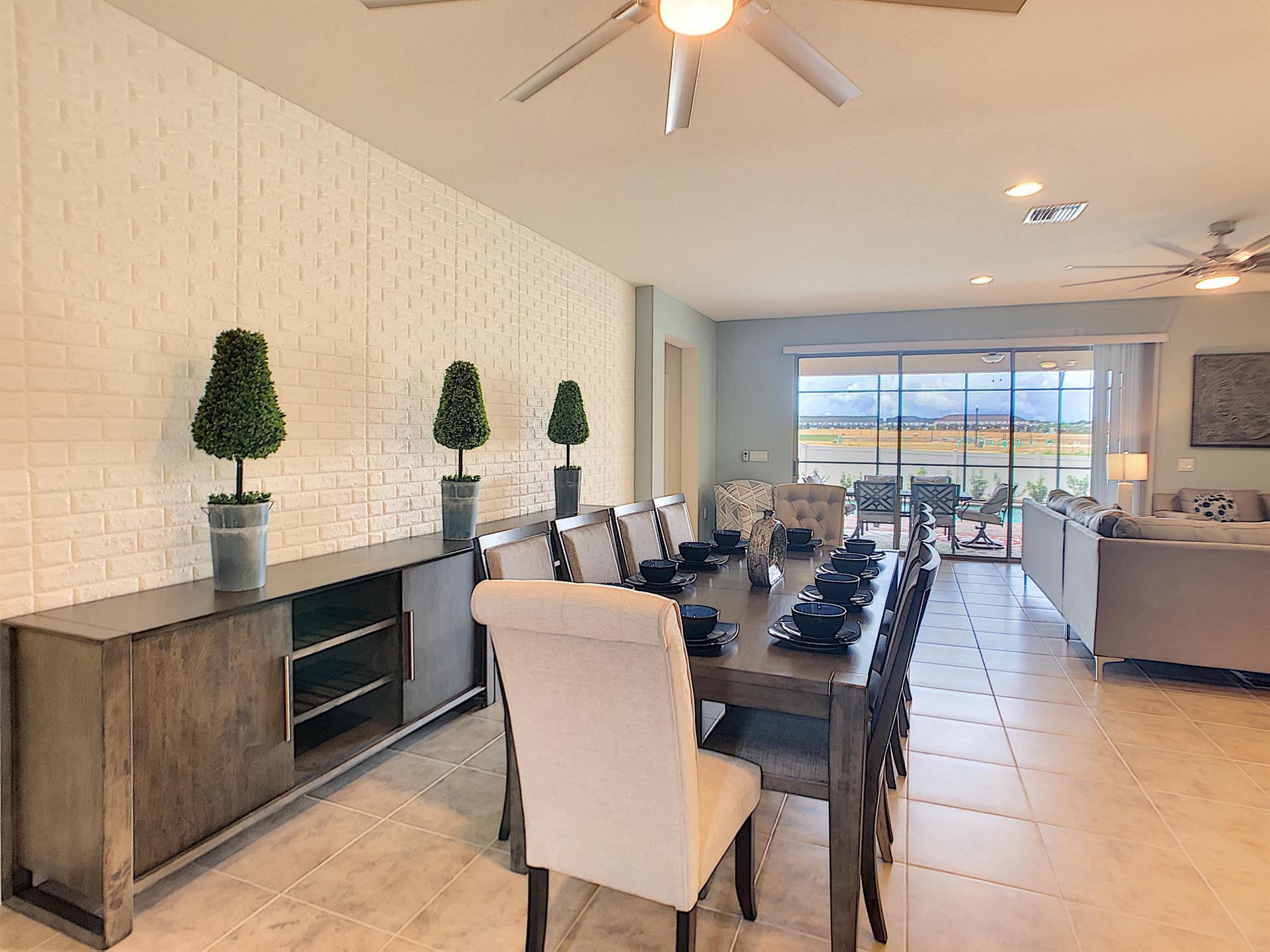 The house was nice and everything went smoothly.. my biggest disappointment was that I specifically called to confirm that was a game room because it was in the amenities for the house (not the club house) and I was told yes it was in the garage. Got there- no game room. The movie theater is a great idea but you couldn’t connect to internet to watch a movie. The home was clean but it could have been a little cleaner. ALL the baseboards were covered in dust, carpets could use a cleaning and the ice maker makes ice but you can’t get it to dispense from the fridge door. Just some things that could be easily addressed. The kitchen is equipped with the bare minimum for utensils. But all n all we had a great stay.