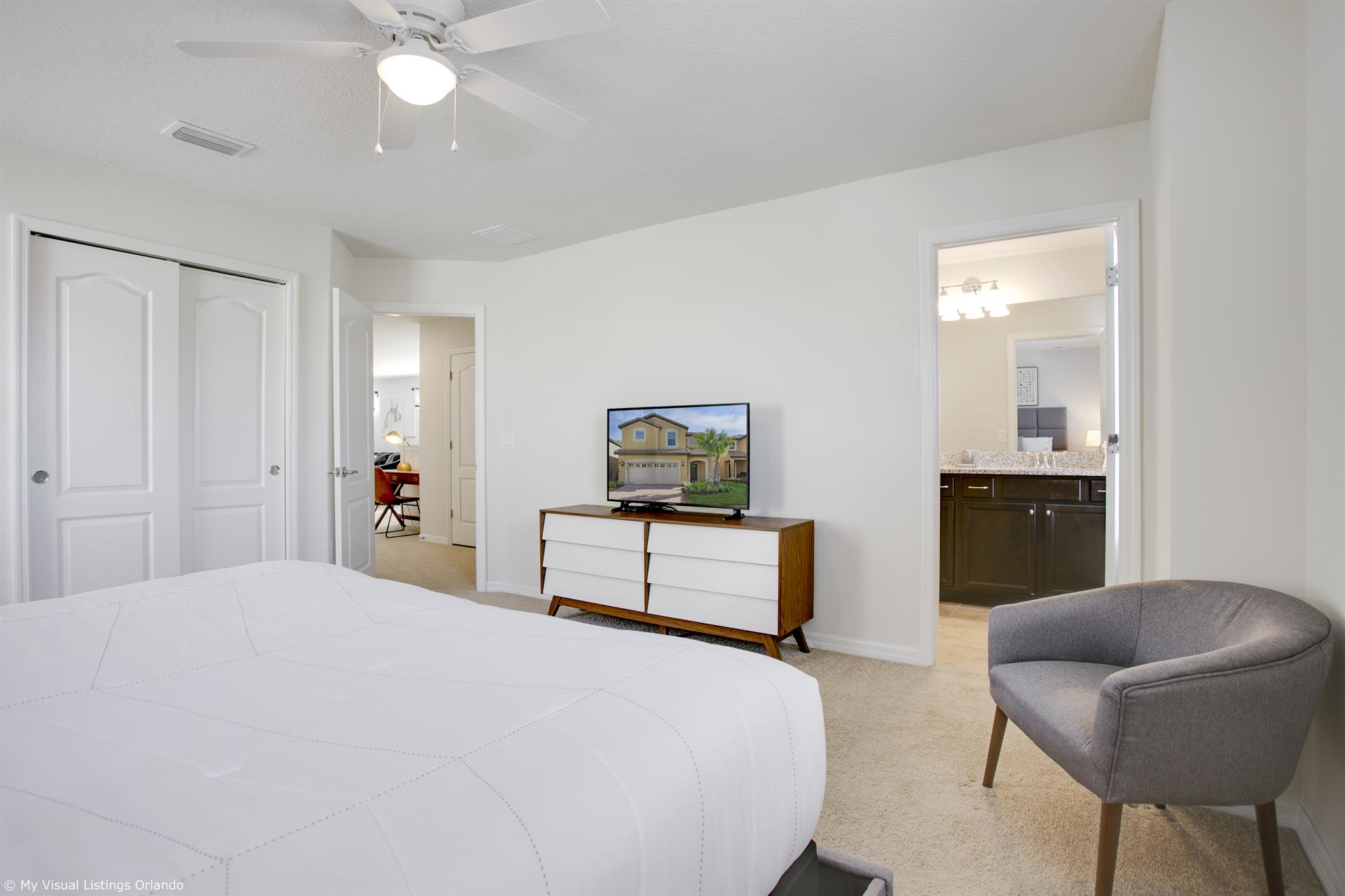 Overall the property met our needs, clean, well decorated and in a very good location to the Disney properties. More than enough space for our three families. Very close to many restaurants and stores. Great club house and pool area with food and beverages. A few things that should be addressed. First in one of the bedroom the box spring was broken and was very uncomfortable for one of the kids. The second is there is no grill on property so it had to be rented from a local company which actually worked out for us. The third and most annoying concern was the heating of the pool. We asked for the pool to be heated and when we got there the temp was no where near 85 degrees. Sent an email to address this and was told it was on a timer. We’ll the timer comes on at 8am and goes off at 8pm. These are actually the times when we were not there, so the timing really sucked. We would get back in the evening and the water temp was cool. Sent a few more emails and felt like we were getting blown off with the response of “it’s on a timer”. No one ever came out to see us about it or maybe change the time. Also there are no lights in the pool than can be turned on. I tried every light switch but nothing. The neighboring houses heaters were running all the time but not ours. Other than these things mentioned we enjoyed our stay.