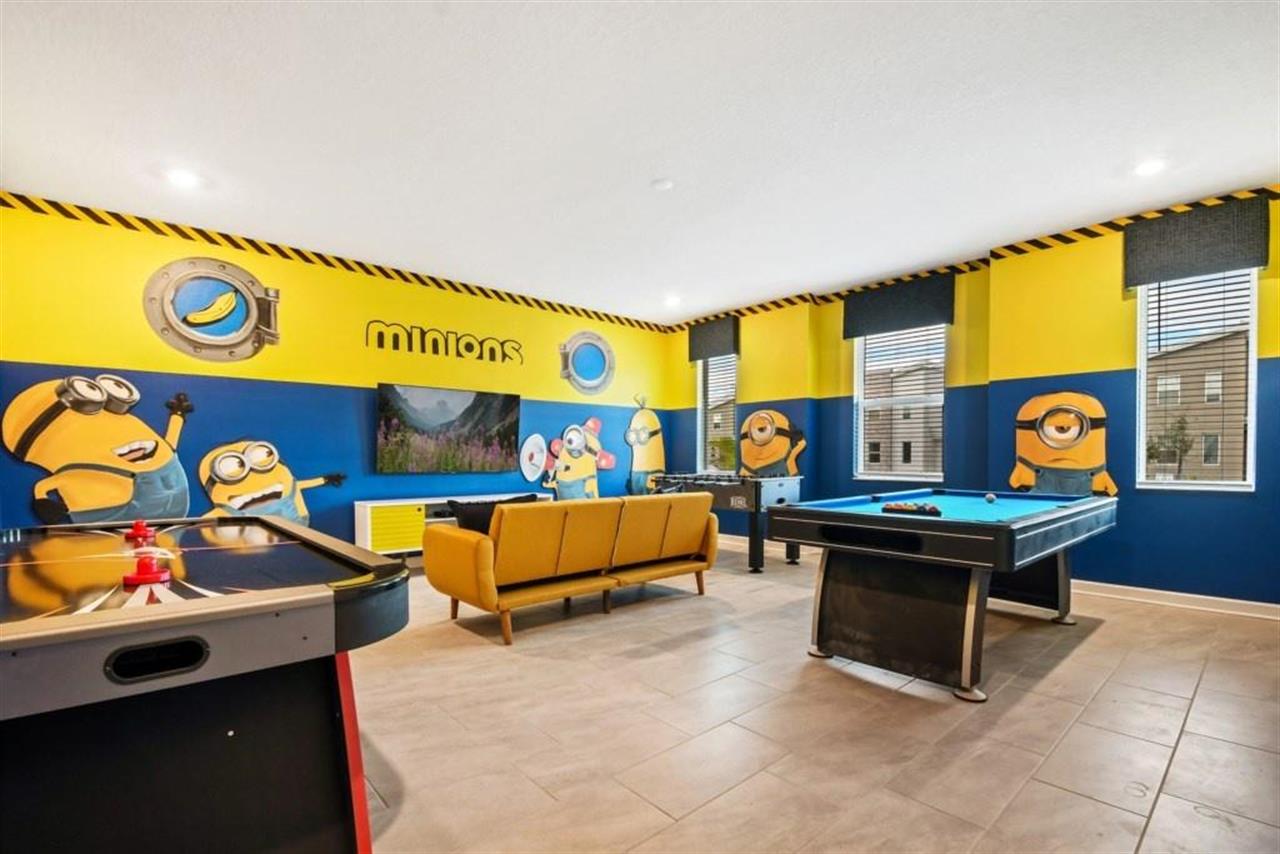 Minions Gameroom w/ Pool Table, Foosball & Air Hockey Table